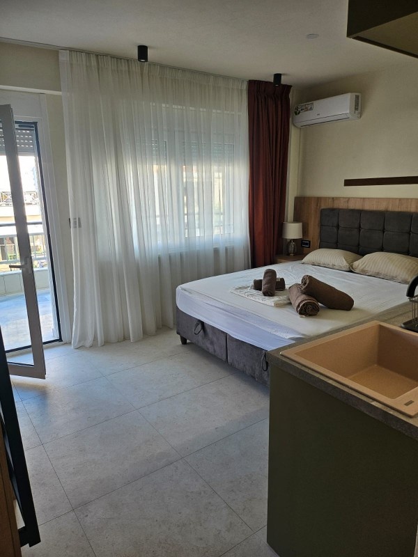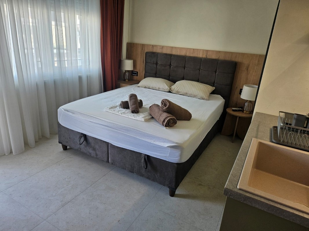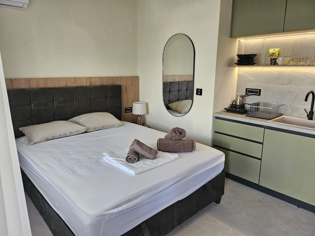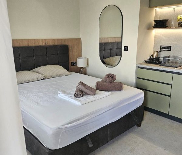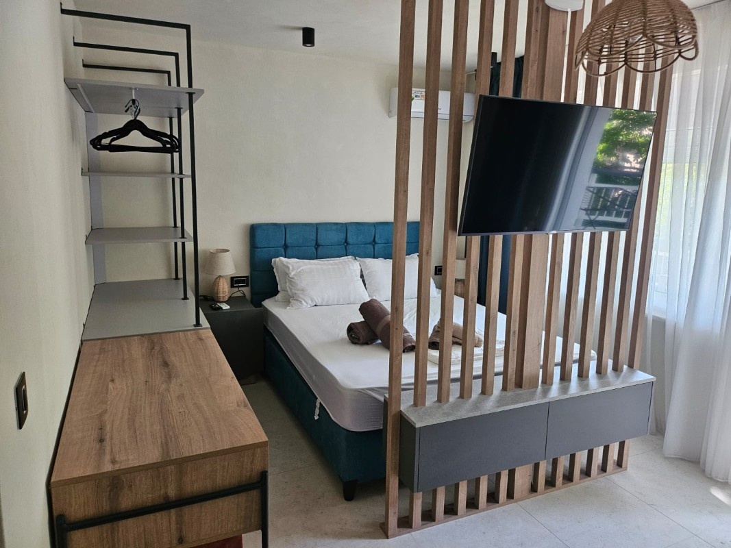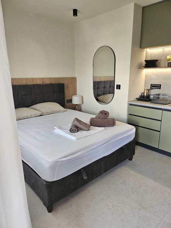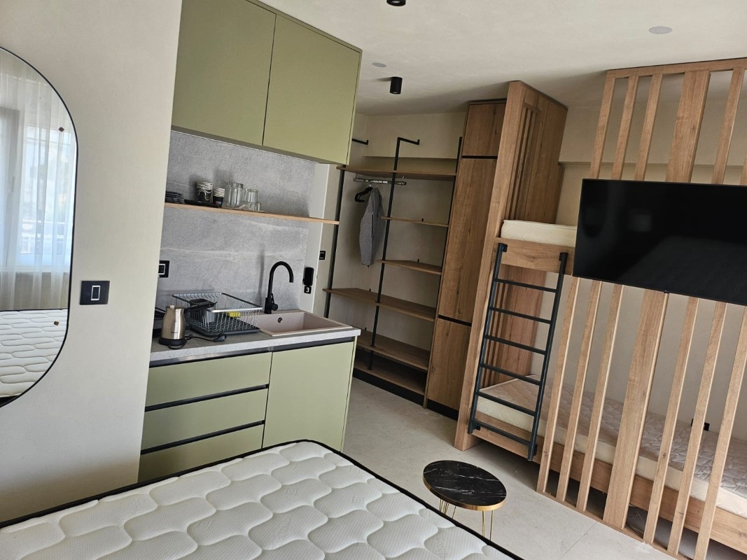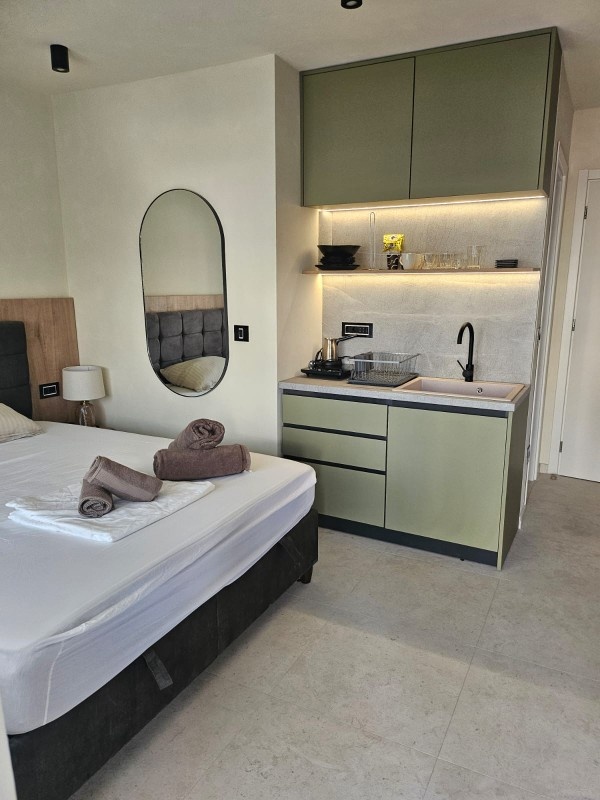 1/3 studio – u jednoj prostoriji čajna kuhinja, bračni ležaj i običan ležaj.