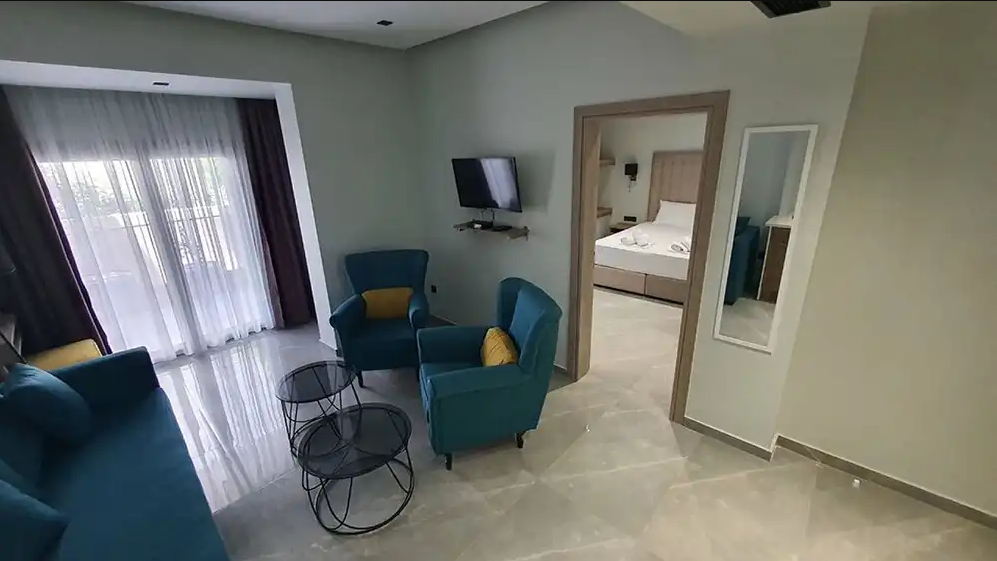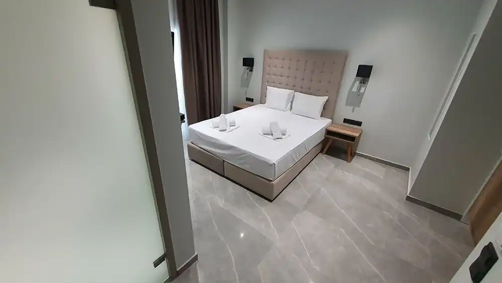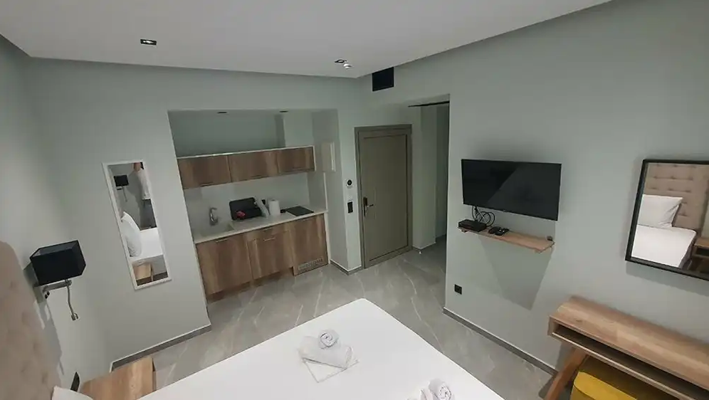 Vila Tami 2 se nalazi blizu centra Haniotija, sagrađena je 2024.godine i udaljena je oko 100m od plaže. Sadržaj: Vila poseduje lift za maksimalno dve osobe. Apartmani i studiji se nalaze na prizemlju, prvom, drugom i trećem spratu. Svi su uređeni tipski, sa istim nameštajem i istim rasporedom. Studio 1/2 (površine oko 25m2) ima kuhinju, jedan francuski krevet (dva dušeka spojena) 160cm širine, za maksimalno dve odrasle osobe, twc,TV, klimu, terasu. Apartman 1/4 (površine oko 35m2) u spavaćoj sobi ima francuski krevet (dva dušeka spojena) 160cm širine, u dnevnom boravku, gde se nalazi i kuhinja, je kauč na izvlačenje, za maksimalno četiri odrasle osobe i jedno dete do 6 godina, twc, TV, klimu, terasu. Sve terase su prostrane i gledaju na susedno dvorište, susednu vilu, ulicu, a sa trećeg sprata imaju i pogled na more. Upotreba klime je uključena u cenu.