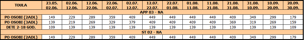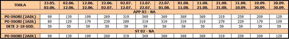 *BESPLATAN SMEŠTAJ ZA DETE 2-18g U PRATNJI DVE ODRASLE OSOBE, KORISTI TREĆI STANDARDNI LEŽAJ*