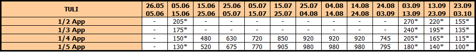 U smenama sa zvezdicom *, u slučaju sopstvenog prevoza cena paket aranžmana se umanjuje za 25€ po osobi.