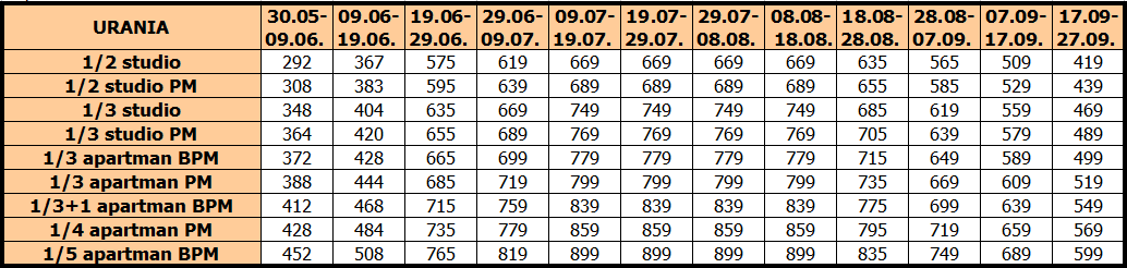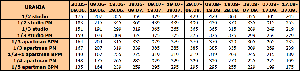 Cene su izražene na bazi najma po studiju/apartmanu za 10 noćenja
