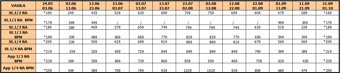 Polazak autobusa je dan ranije u odnosu na datum iz tabele.