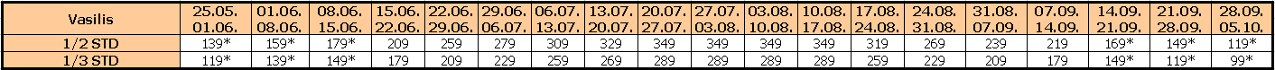 Za sopstveni prevoz cena aranžmana se umanjuje za 30€ po osobi, a 20€ za smene označene ZVEZDICOM (*)