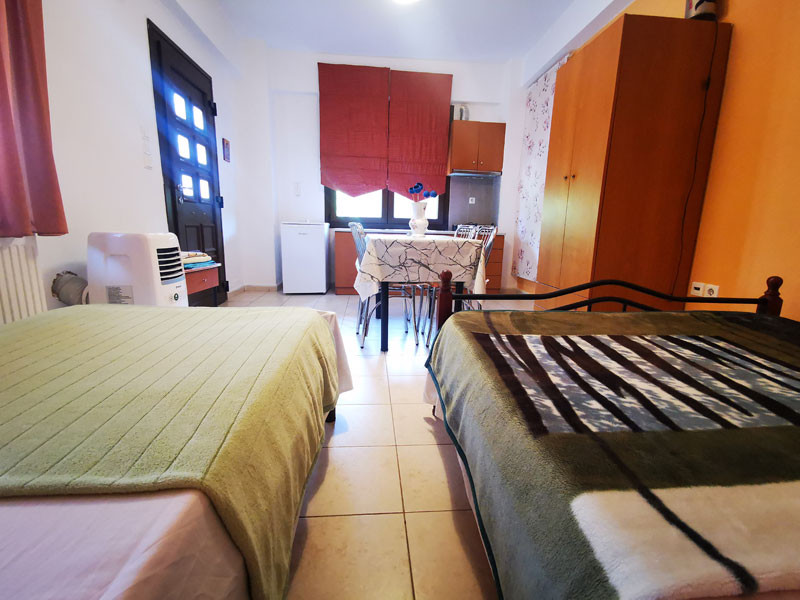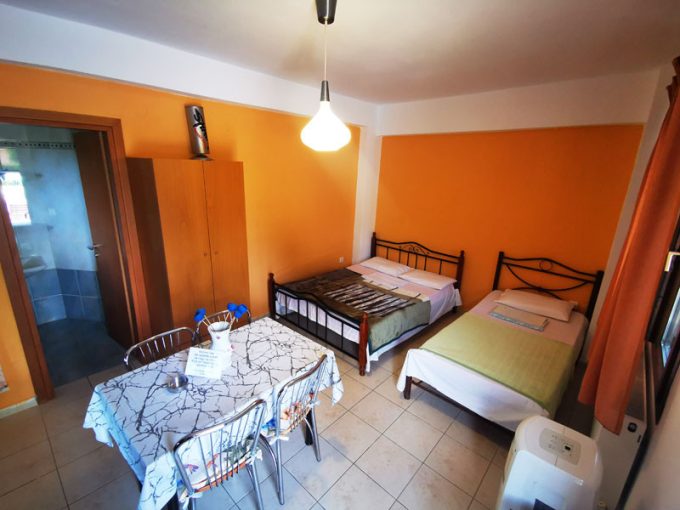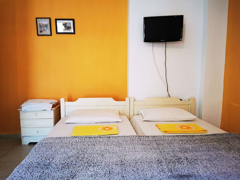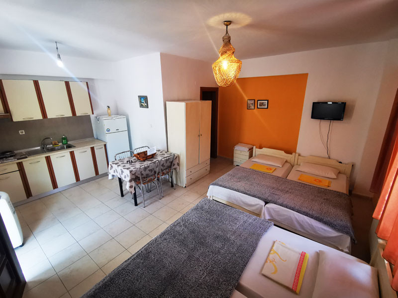 Smeštaj: Objekat raspolaže trokrevetnim i četvorokrevetnim studijima koji se nalaze u prizemlju. Sve smeštajne jedinice imaju čajnu kuhinju, kupatilo, terasu sa garniturom za sedenje (terasa je ujedno i ulazni deo), klima uređaj (BESPLATNO), SAT TV, besplatni WiFi internet, plafonski ventilator. Promena peškira i posteljine jednom tokom boravka, nakon petog noćenja.