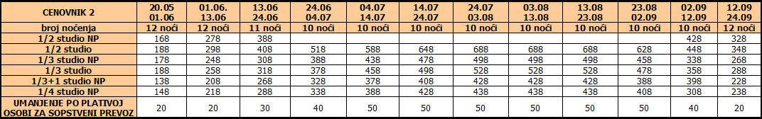 CENOVNIK LETO 2025. – 10 NOĆENJA