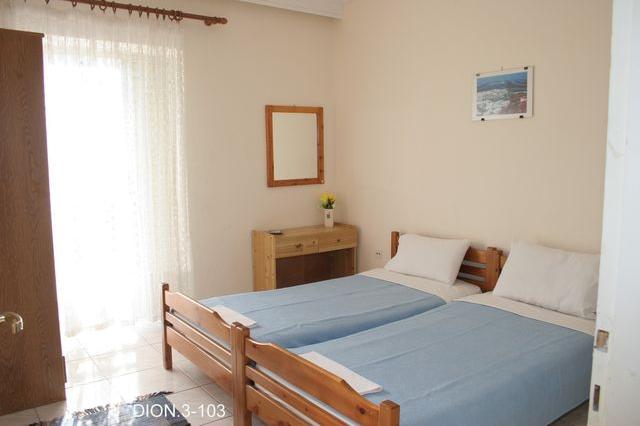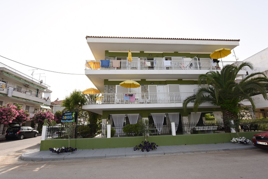 Apartmanski smeštaj DIONISOS 3 udaljen je oko 80 metara od duge peščane plaže i nalazi se u istoj ulici u kojoj je objekat Dionisos 2. Poseduje dvokrevetne studie i apartmane, kao i petokrevetne dupleks apartmane. Svi apartmani se nalaze na prvom spratu, dok se u prizemlju nalazi prostor predviđen za goste i decu, sa stolovima za bilijar i stoni tenis. U dvorišnom delu je veliki sto sa klupama gde se gosti mogu odmarati i družiti. Objekat “Dionisos 3” poseduje wireless internet konekciju (u zajedničkim prostorijama u prizemlju).