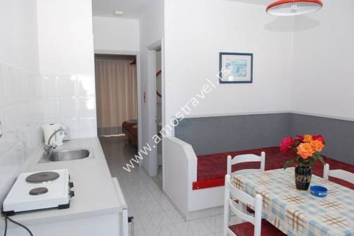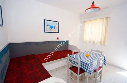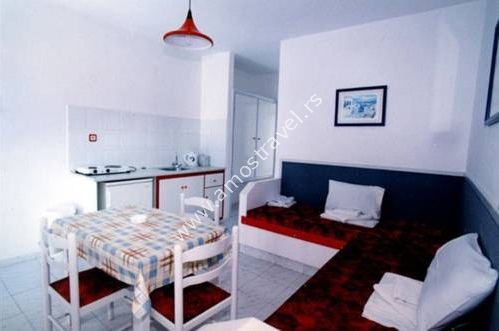 Smeštaj: Hotel ima 42 studija. Svi imaju kupatilo, kuhinju, klimu, TV, frižider.