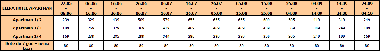 Dete do 7 godine u zajedničkom ležaju u 1/2 apartmanu u pratnji dve punoplatežne osobe – nema svoj ležaj.