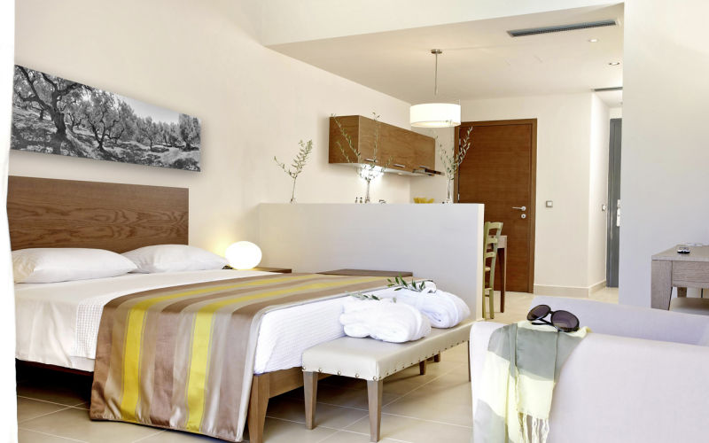 Lokacija: Hotel je smešten u Tigakiju, na severo-zapadnoj obali ostrva, udaljen je od grada Zakintosa 4km a od aerodroma 2 km. Pogodan je za porodice sa decom.