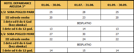 *Dinarski deo aranžmana plaćaju svi putnici bez obzira na izabranu vrstu usluge i prevoza do letovališta.