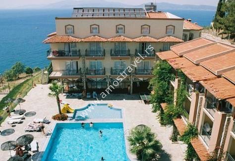 Sadržaji: Recepcija, otvoreni i zatvoreni deo restorana, A la carte restoran, bar, otvoreni bazen, bazen za decu, bilijar, stoni tenis, animacija, servis za pranje veša, Internet, doktor, parking…