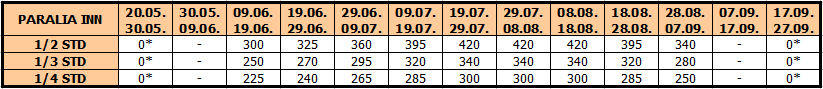– Turističku taksu: 2€ po sobi dnevno (plaća se na licu mesta, direktno vlasniku i podložna je promeni).