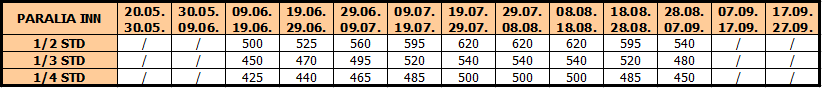 CENOVNIK LETO 2026. – 10 NOĆENJA