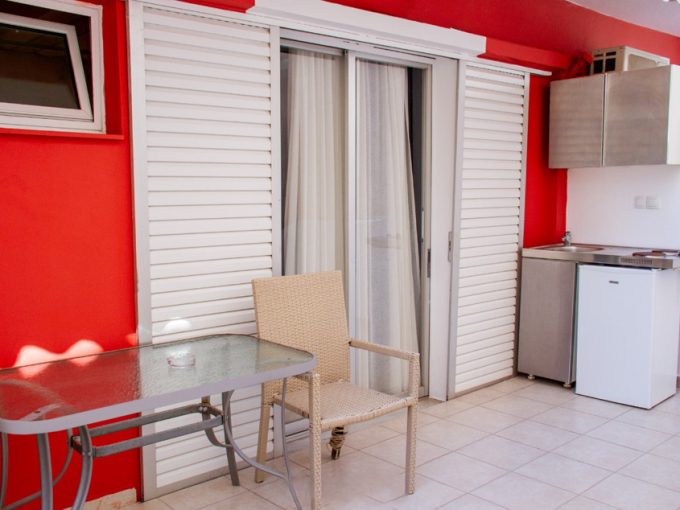 Opis: U našoj ponudi su dvokrevetna, trokrevetna i četvorokrevetna studija, smeštena na prvom i četvrtom spratu. Svaki poseduje opremljen kuhinjski deo, kupatilo/wc, terasu, TV, WiFi internet i klima uređaj (uključen u cenu aranžmana). Objekat poseduje recepciju, lift, loby bar, roof garden, a ispred hotela je park. U hotelu je čišćenje svakodnevno, promena peškira svakog drugog dana. U ponudi su usluga najma ili polupansiona (doručak-na bazi švedskog stola, večera-menu).