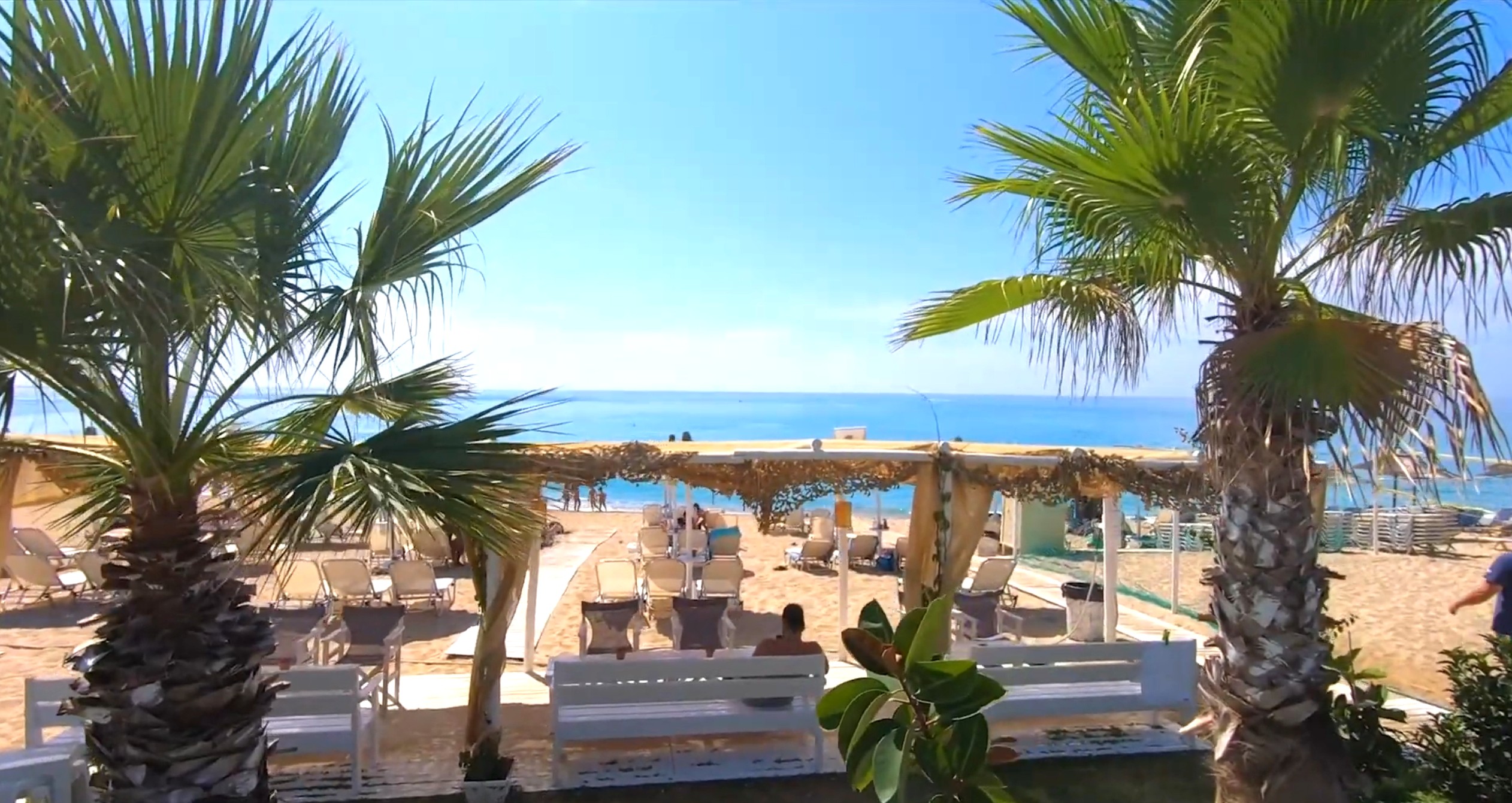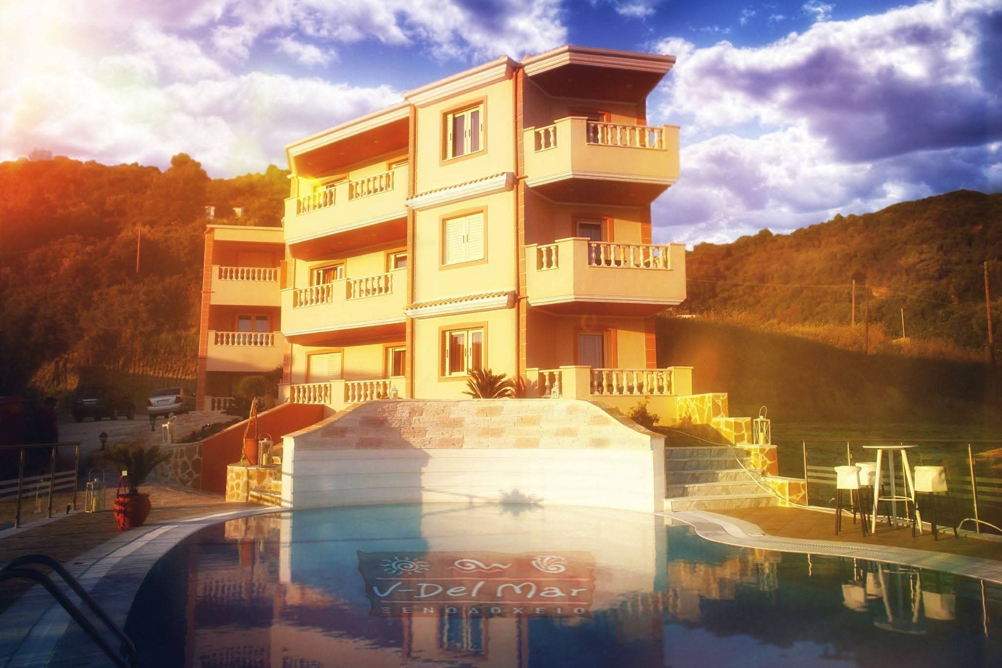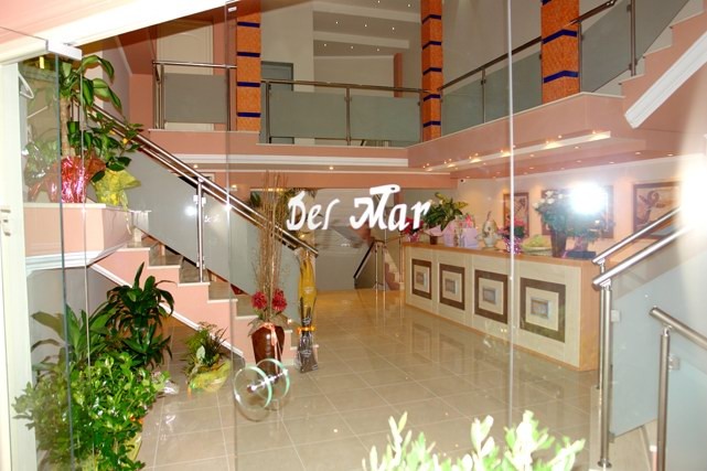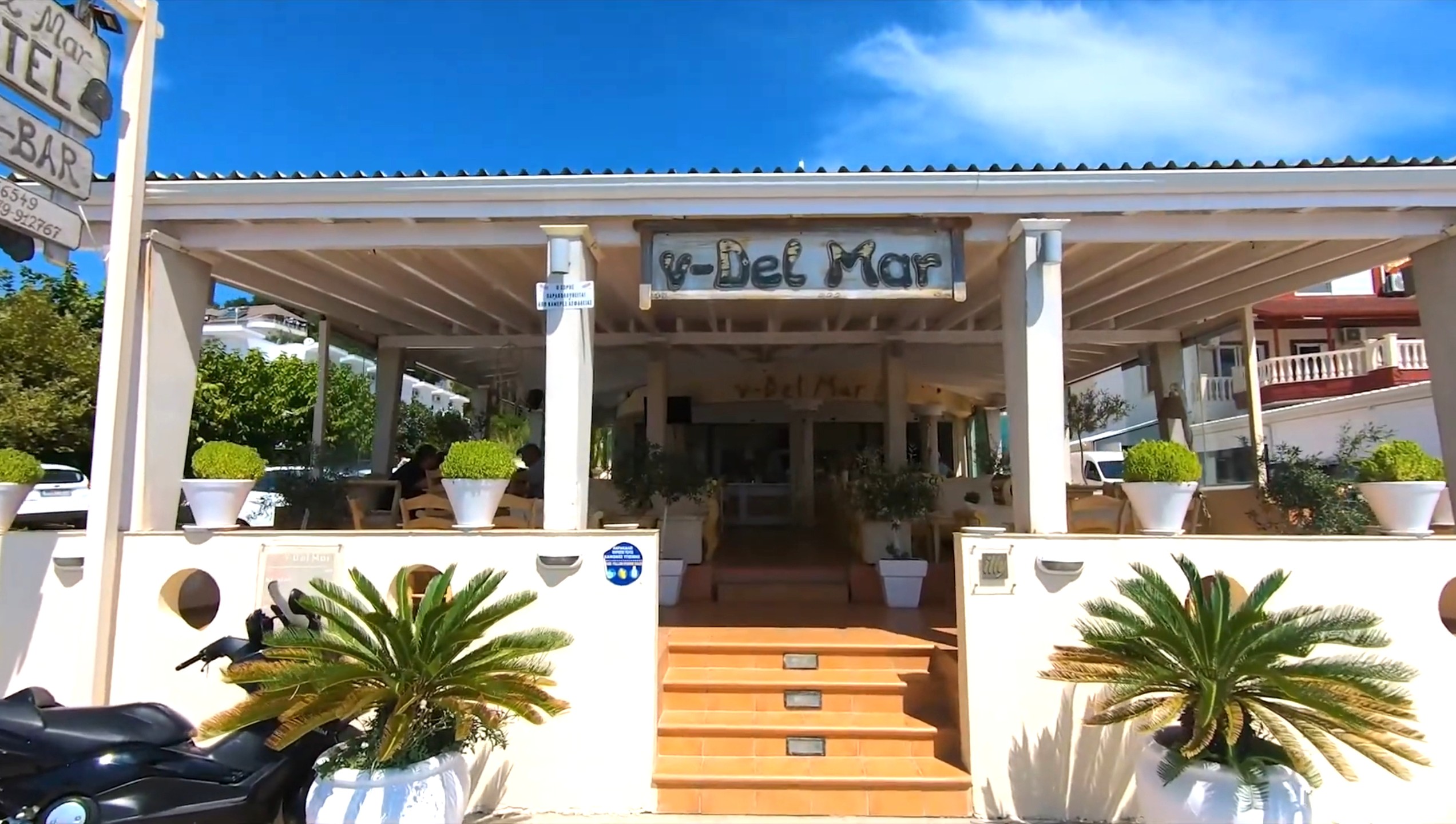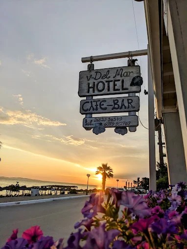 Hotel V-Del Mar je kompleks sa bazenom, restoranom, privatnim parkingom i uključenim ležaljkama i suncobranima na plaži. Nalazi se u centralnom delu letovališta i od plaže ga deli samo ulica.