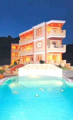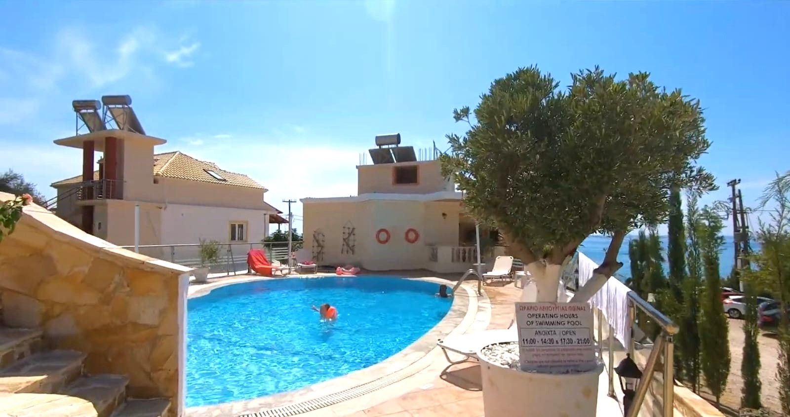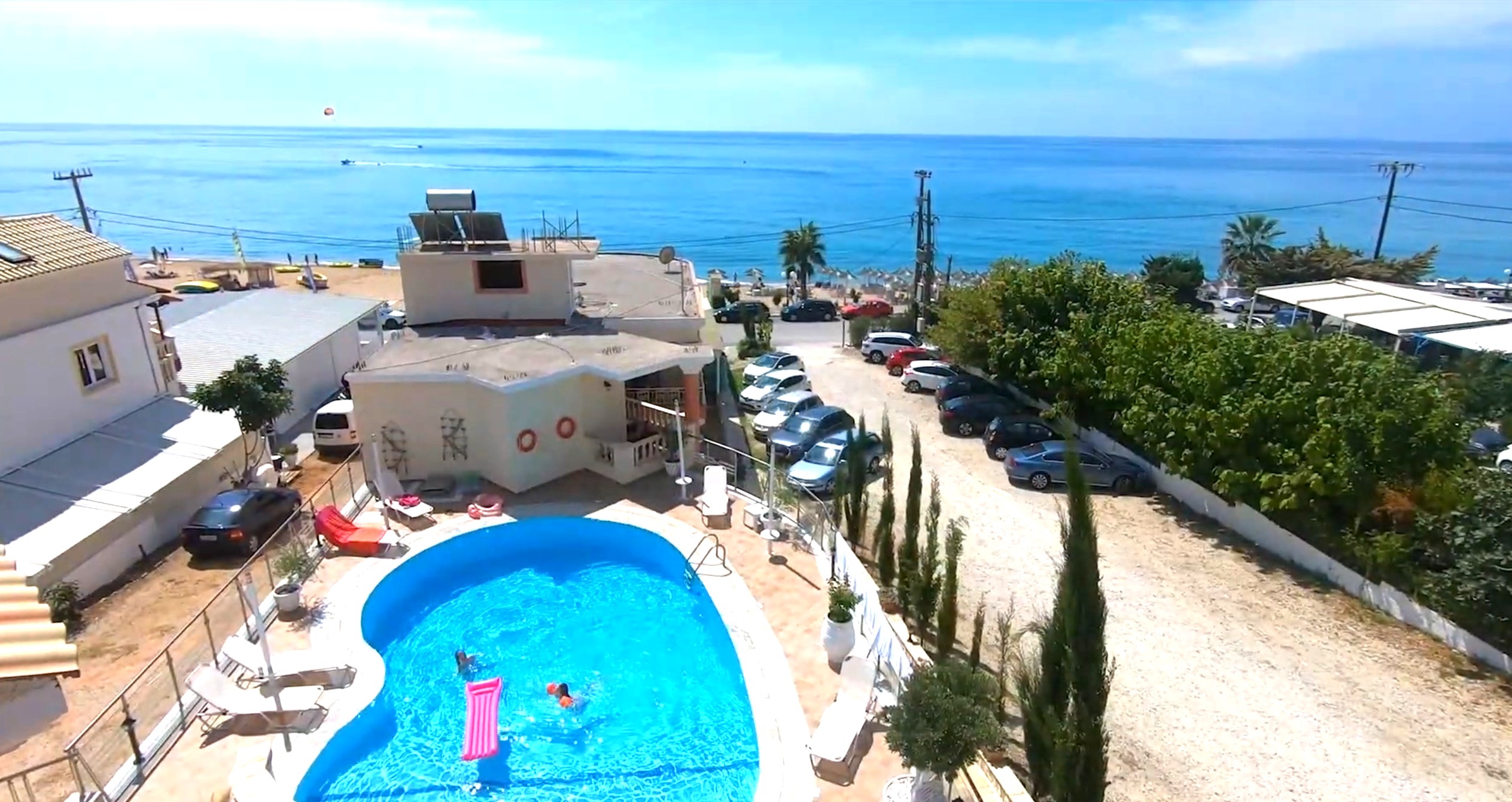 Raspolaže kvalitetnim i veoma lepim sobama sa fantastičnim pogledom na more i bazen (samo sobe u prizemlju nemaju pogled na more i bazen), a gostima su na raspolaganju bazen, privatni parking kao i set ležaljki i suncobrana na plaži ispred samog kompleksa (bez obaveze konzumacije). Doručak (švedski sto) koji je uključen u cenu se služi u hotelskom restoranu sa predivnim pogledom na more. Restoran i bar su otvoreni tokom celog dana tako da naši gosti mogu sebi organizovati i ostale obroke i okrepljenje unutar samog kompleksa.