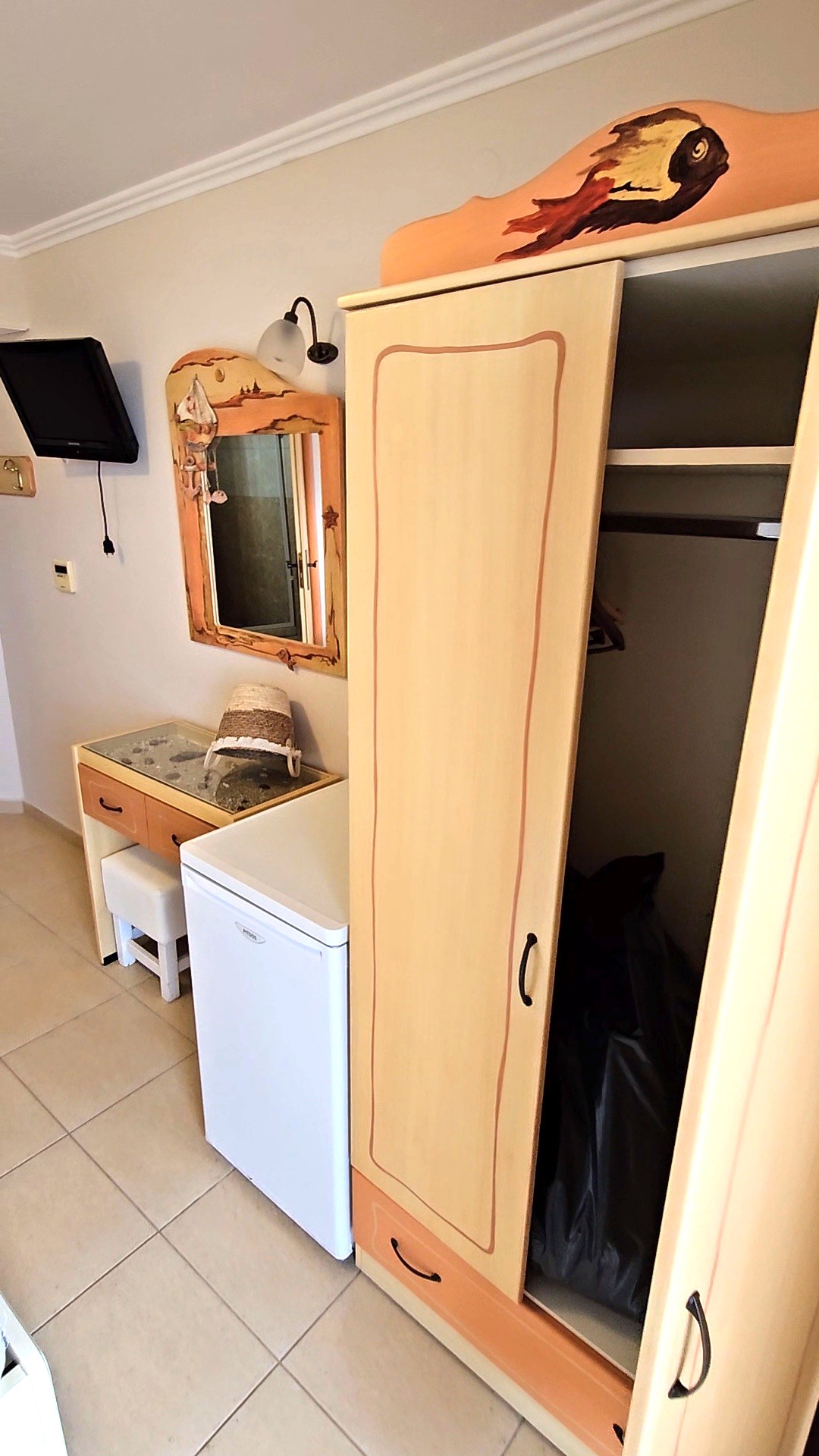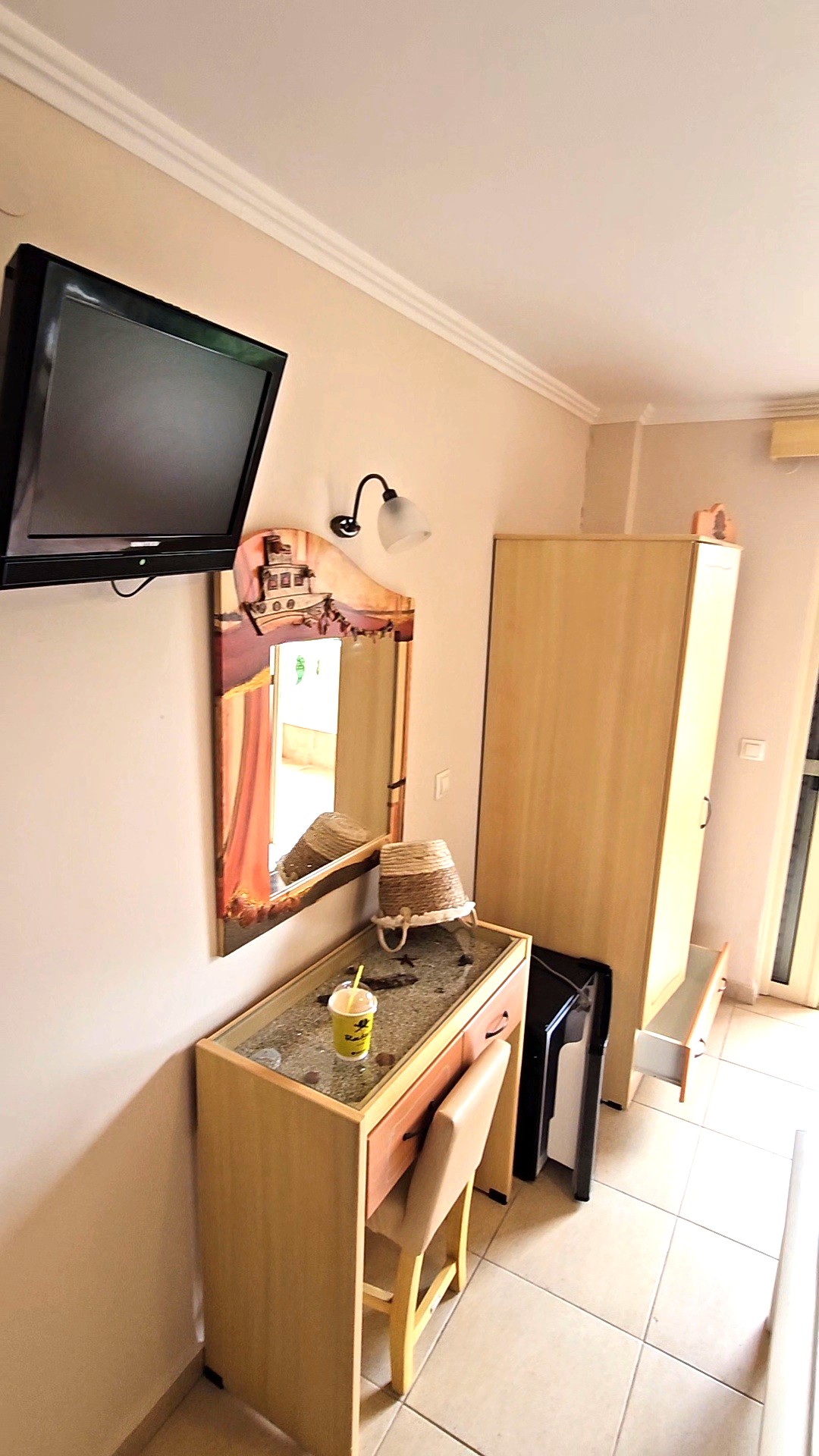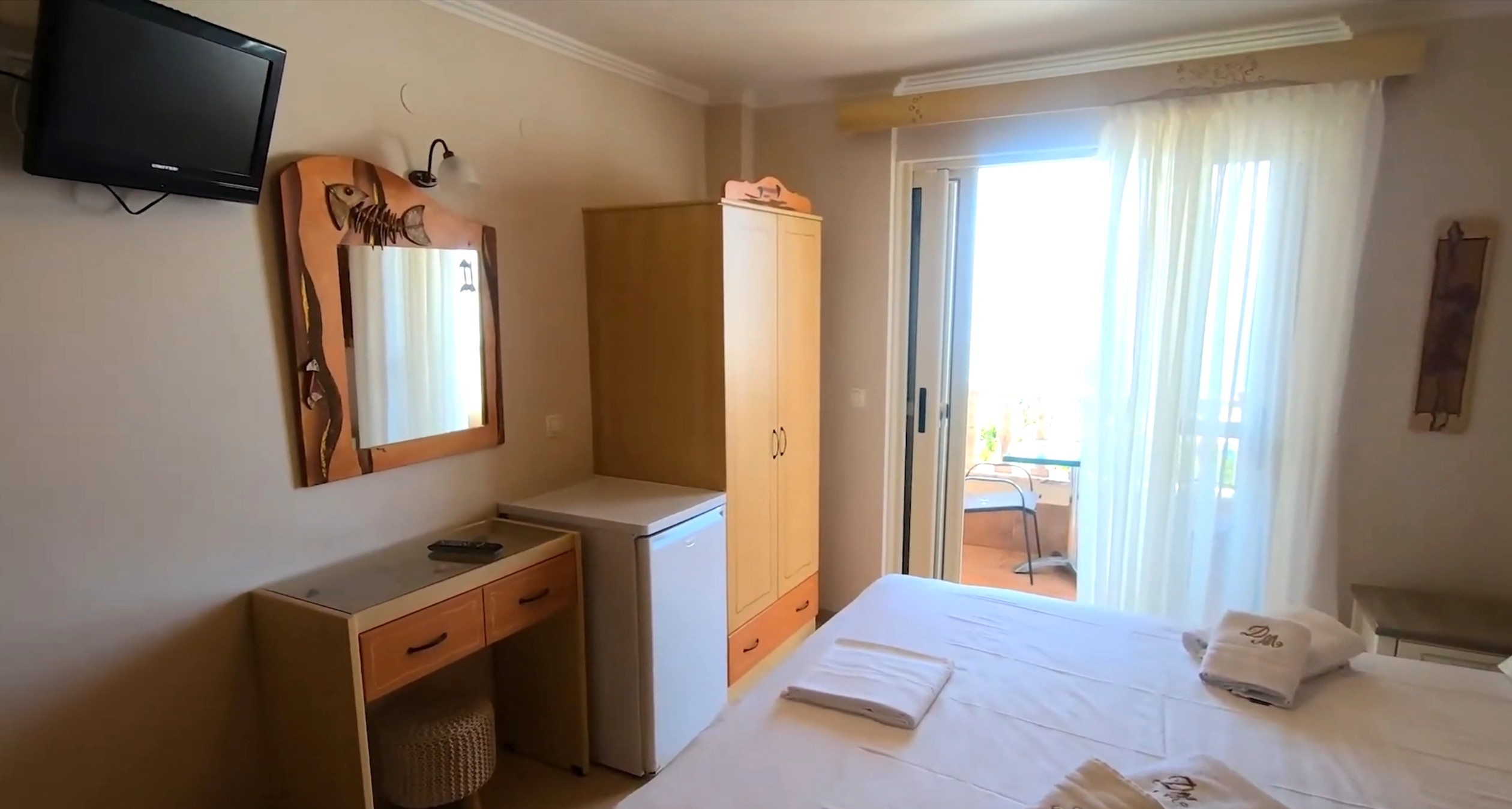 Smeštajne jedinice NE POSEDUJU KUHINJU već samo mini bar ili frižider. U svom sastavu imaju kupatilo, terasu sa garniturom za sedenje, TV i klima uređaj čije je korišćenje besplatno. Promena posteljine i peškira se vrši na polovini boravka. U objektu je na raspolaganju i besplatan Wi Fi internet čija se brzina protoka ne može garantovati. Hotel poseduje sopstveni parking, a gostima su na raspolaganju recepcija, bazen, besplatne ležaljke i suncobrani na plaži.