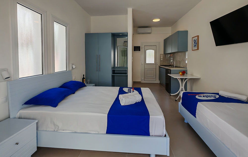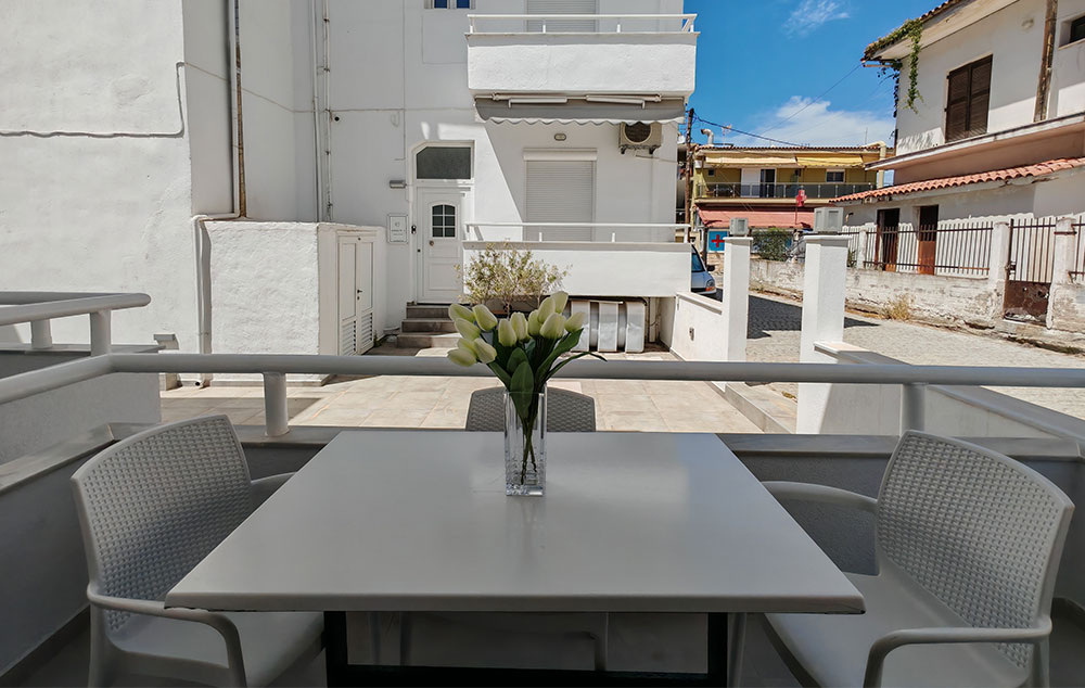 Vila Teo New (ex Afroditi new) nalazi se u starom delu Sartija, na oko 30m od mora, na samom šetalištu, a opet desetak metara uvučena u mirnoj ulici. U ponudi su studiji za 2-3 osobe, koji se nalaze u prizemlju i na prvom spratu. Kuća ima SAT TV i klima uređaje čije je korišćenje uključenu u cenu od sezone 2025. Kuća je renovirana 2025. godine.