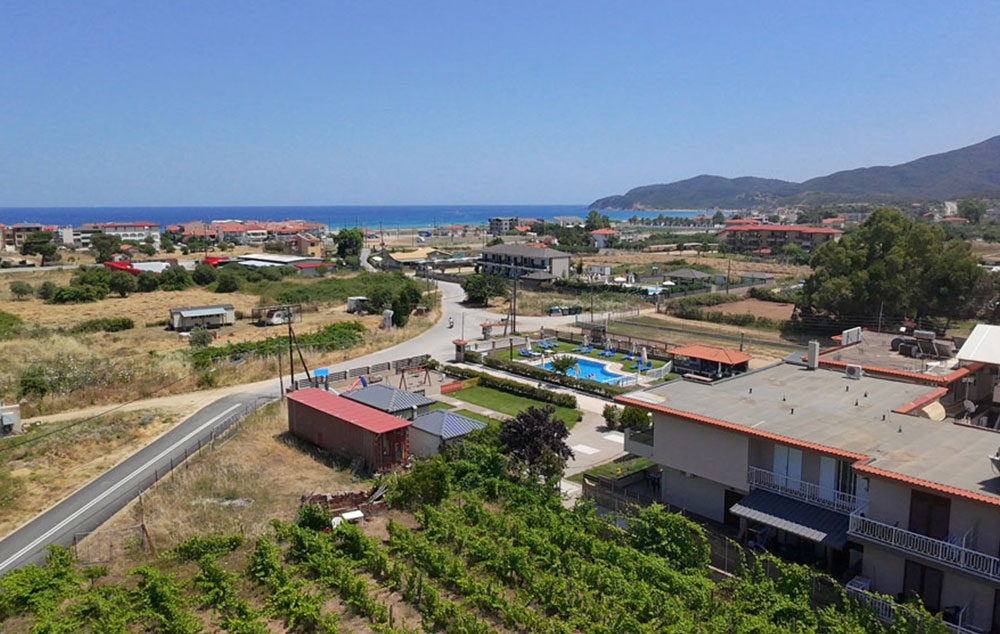 Akis New je noviji blok poznate kuće Akis, na oko 420m od mora, sa uređenim dvorištem sa roštiljem, parkingom i manjim dečijim igralištem. Studiji za 2-4 osobe se nalaze u prizemlju i na prvom spratu. Kuća ima SAT TV, WiFi i klima uređaje čije je korišćenje uključeno u cenu. Gostima je na raspolaganju dvorište sa bazenom i roštiljem u kući Katerina Resort koja je udaljena oko 100m. Uz minimalnu doplatu je omogućeno korišćenje i veš mašine.