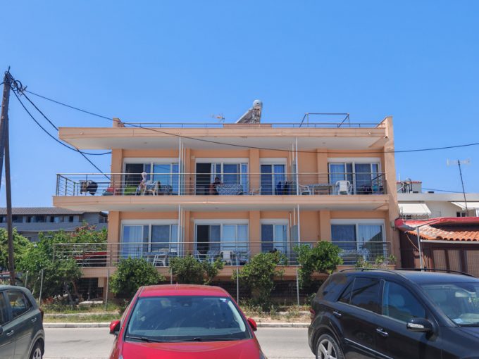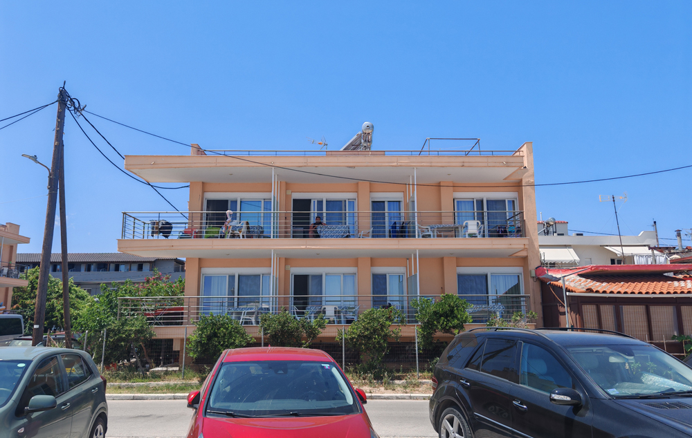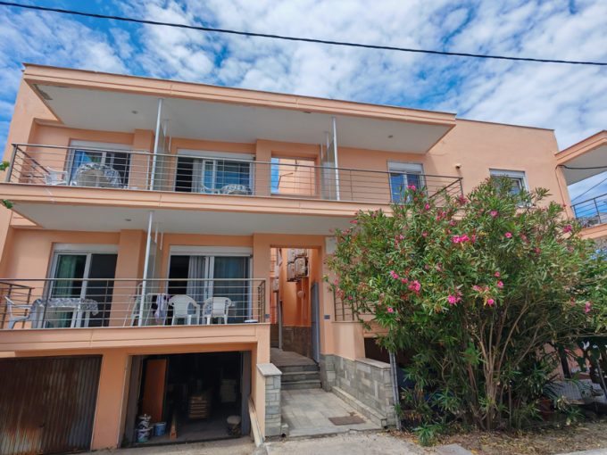 Nalazi se uz plažu u novom delu Sartija. Studiji i apartmani se nalaze u visokom prizemlju i na prvom spratu i imaju fantastičan direktan ili bočni pogled na more. Kuća ima besplatan signal za bežični internet, a sve smeštajne jedinice imaju TV i klima uređaj čije je korišćenje uključeno u cenu u julu i avgustu. Zbog lokacije, pogleda na more kao i blizine plaže ovo je jedan od najtraženijih smeštaja u našoj ponudi.