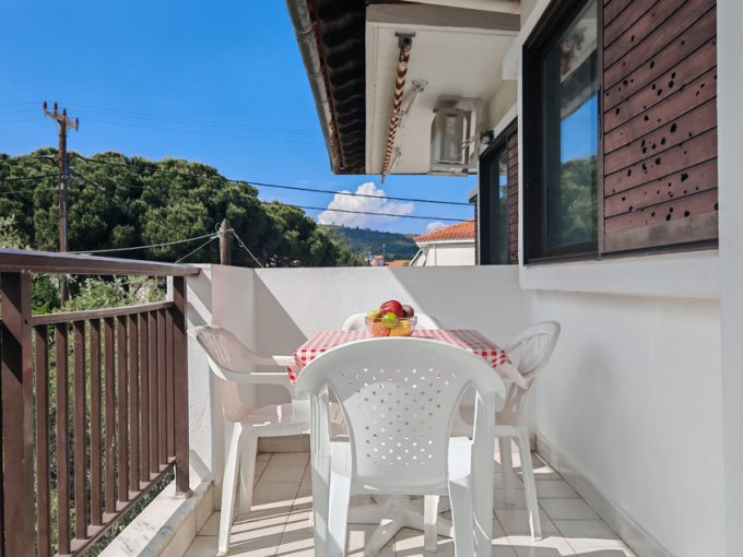 Nalazi se u novom delu Sartija na oko 110m od najlepšeg dela peščane plaže u Sartiju. Apartmani su za 2 do 5 osoba, a glavni kvalitet ove kuće jeste što je i smeštaj za dve osobe u strukturi apartmana sa odvojenom spavaćom sobom. Izuzetak je studio br. 4 koji je i cenovno odvojen. Kuća ima SAT TV, besplatan WiFi, klima uređaje čije se korišćenje doplaćuje.