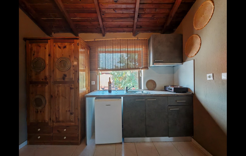 Nalazi se na oko 390m od plaže. U ponudi su studiji i apartmani u prizemlju i na prvom spratu. Kuća ima SAT TV, WIFI i klima uređaje čije je korišćenje uključeno u cenu. Gostima je na raspolaganju dvorište kao i parking.