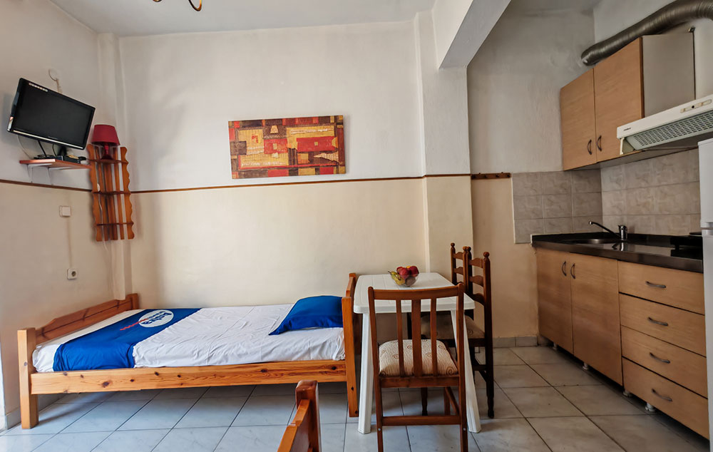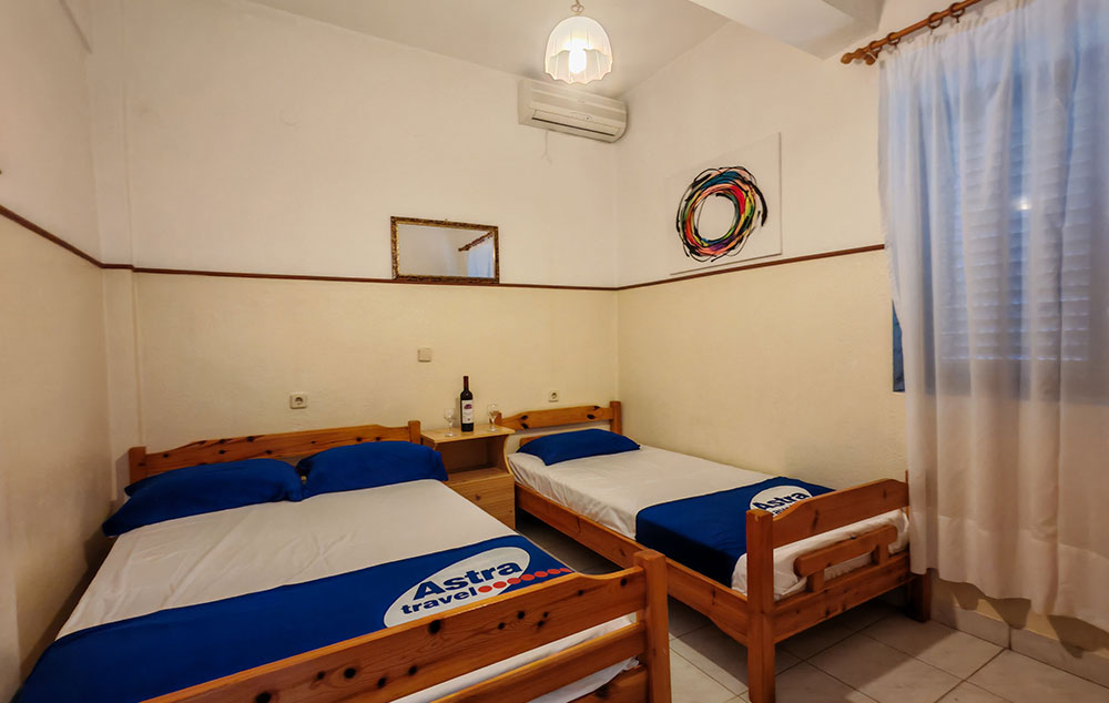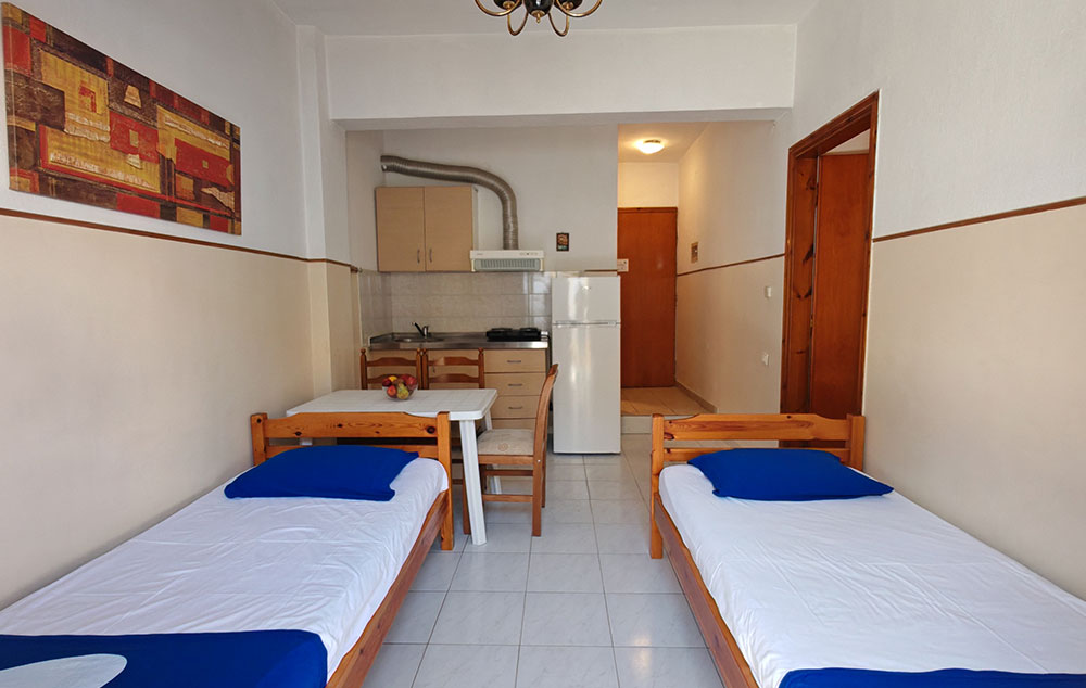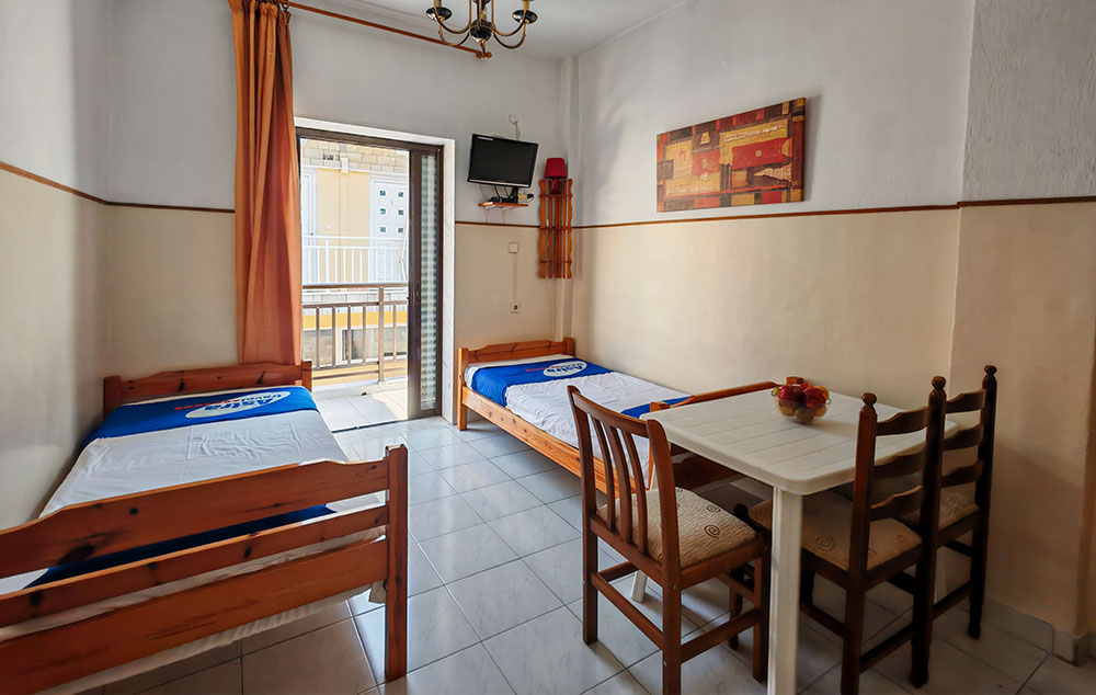 Nalazi se u starom delu Sartija na oko 40m od mora. U ponudi su dvokrevetni studio i apartmani za 4-5 osoba na prvom spratu i imaju terase sa pogledom ka dvorištu ili ka ulici. Kuća ima SAT TV i klima uređaje čije se korišćenje doplaćuje.