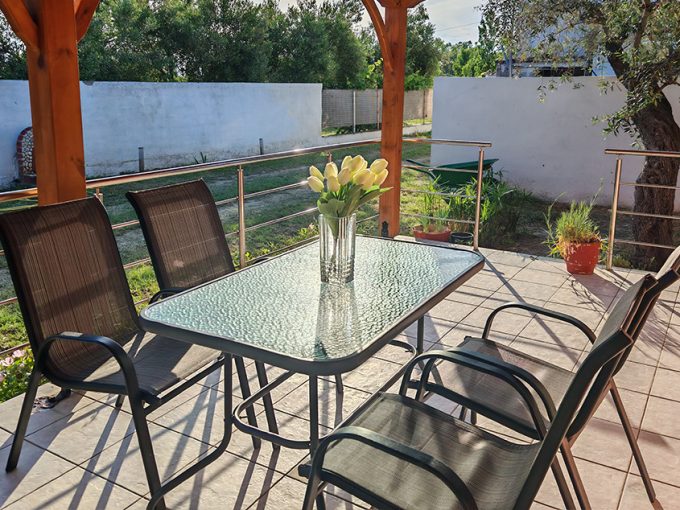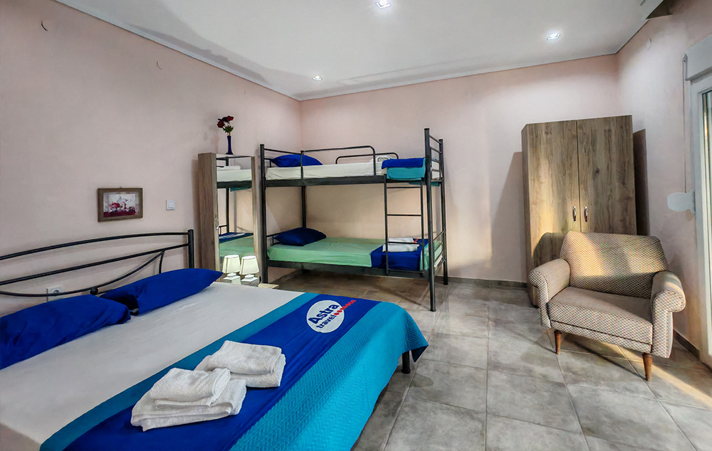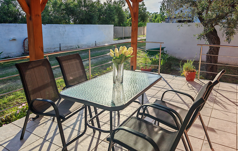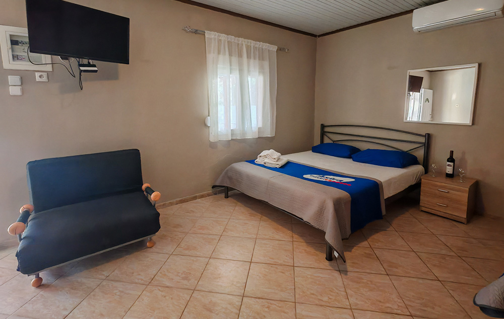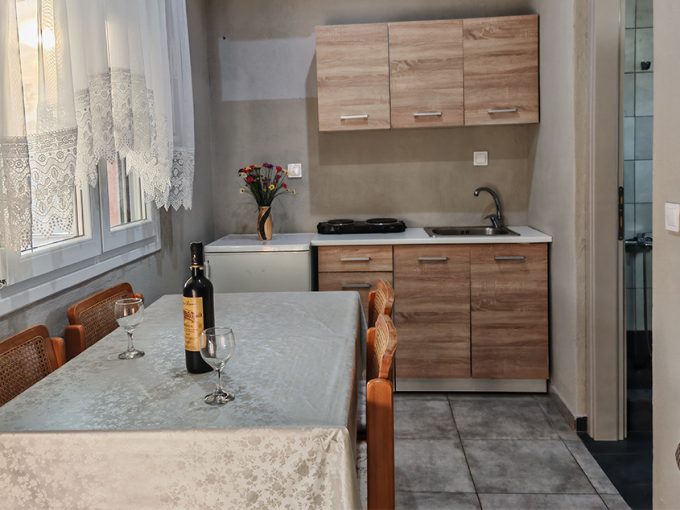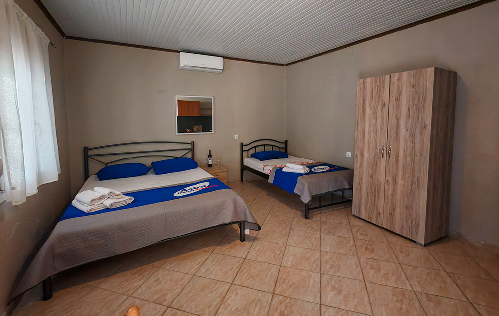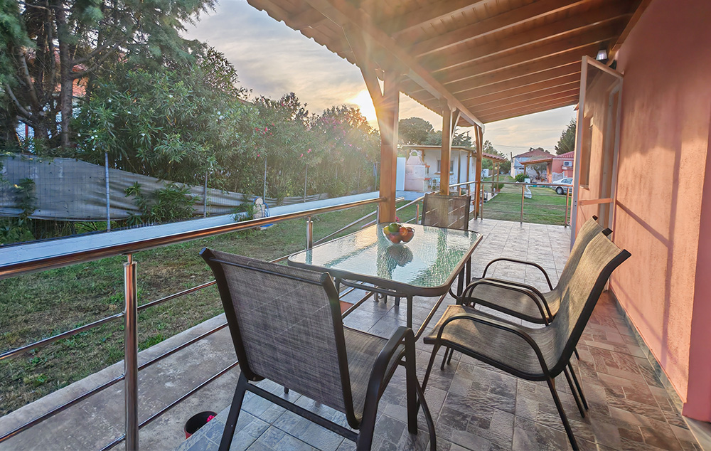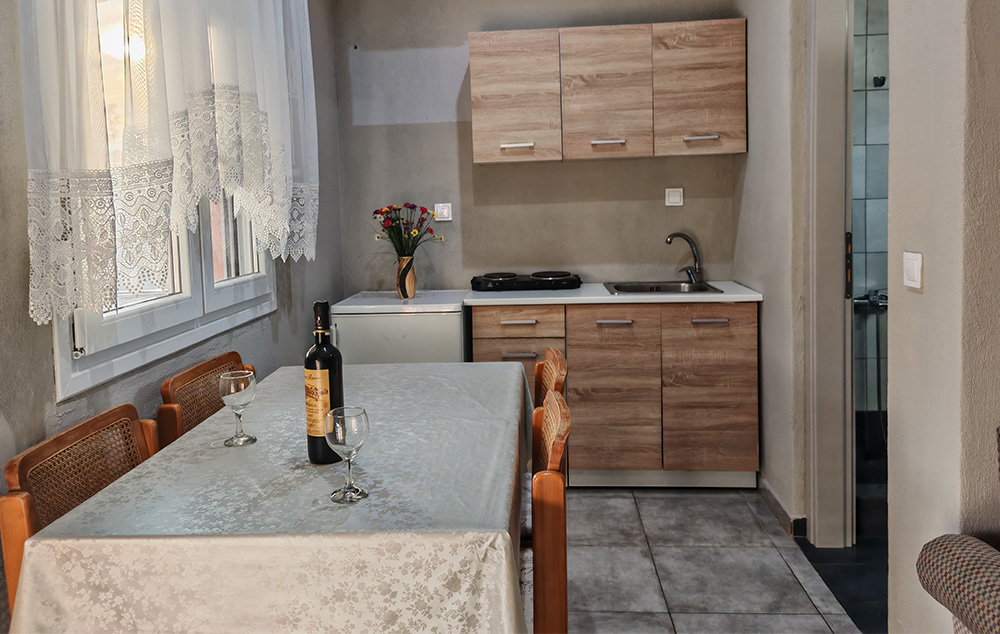Nalazi se na 450m od mora. Studiji i apartman se nalaze u prizemlju u mirnom delu Toronija. Svi imaju TV, klima uredjaj čije je korišćenje uključeno u cenu kao i signal za besplatno korišćenje bežičnog interneta. Gostima je na raspolaganju travnato dvorište sa roštiljem i prostorom za parking vozila.