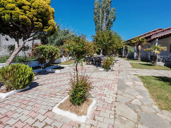Bungalovi se nalaze na oko 20m od glavne zgrade i smešteni su u prelepom dvorištu punom cveća i zelenila gde je gostima na raspolaganju i roštilj. Kuća ima SAT TV, signal za bežični internet i klima uređaje čije je korišćenje uključeno u cenu. Gostima je na raspolaganju i korišćenje ograničenog broja parking mesta. Prilikom zamene posteljine je organizovano i čišćenje smeštaja. Zbog lokacije kao i zbog strukture bungalova ovo je jedan od ubedljivo najtraženijih smeštaja u Toroniju.