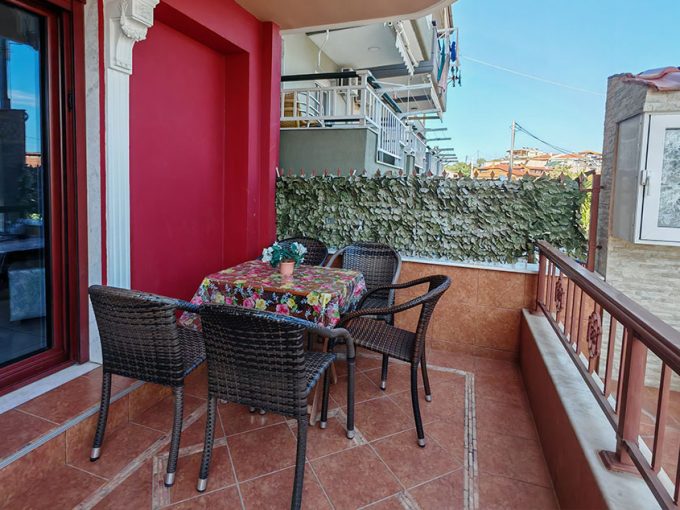 Nalazi se u starom delu Sartija na samo 100m od glavnog trga i na oko 270m od plaže. Petokrevetni apartman se nalazi u prizemlju. Kuća ima signal za korišćenje bežičnog interneta, a smeštajne jedinice imaju TV i klima uređaj čije se korišćenje posebno doplaćuje.