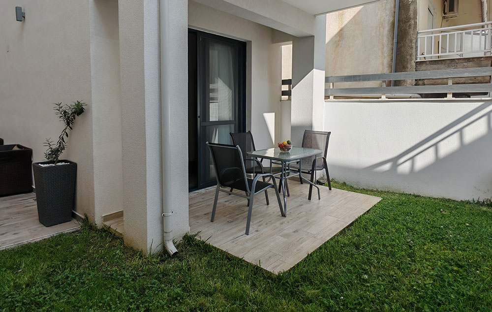 Studiji sa oznakom DM (107,207) imaju lep pogled na more izmedju zgrada. Po istoj ceni su u ponudi i studiji sa oznakom garden (001,006) koji se nalaze u prizemlju i osim terase imaju svoje malo izdvojeno travnato dvorište (oko 15m2).