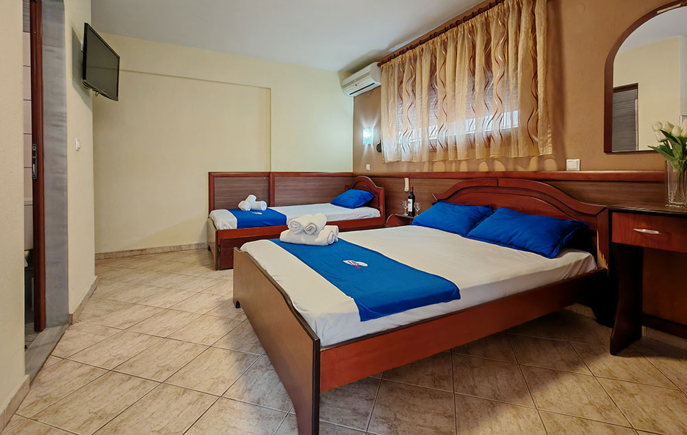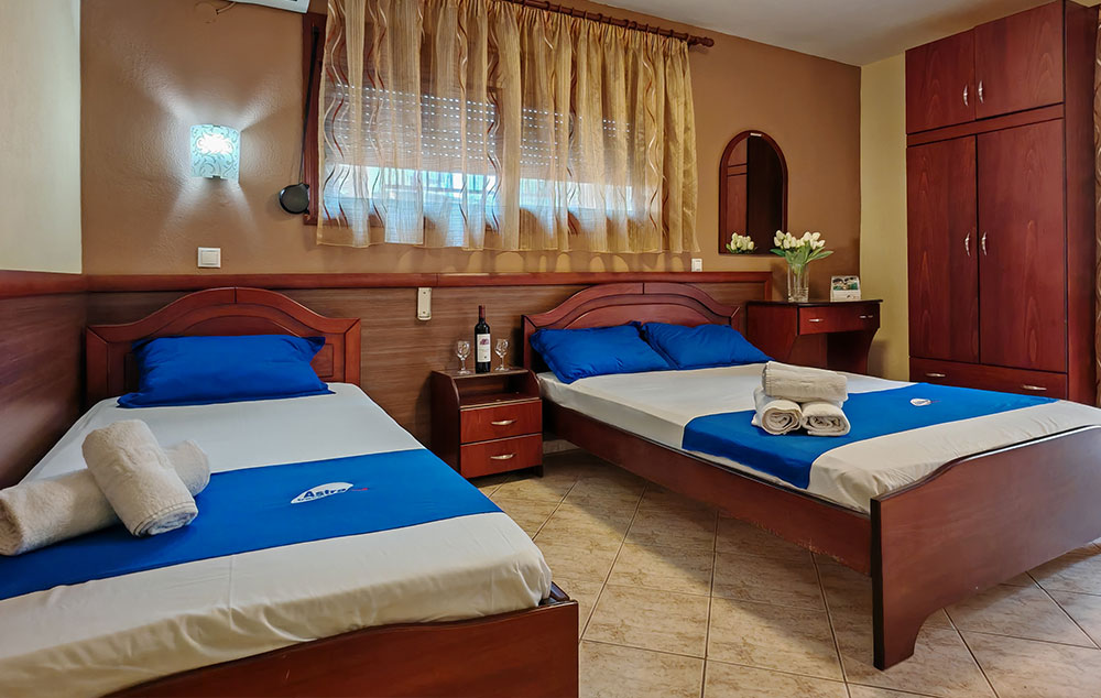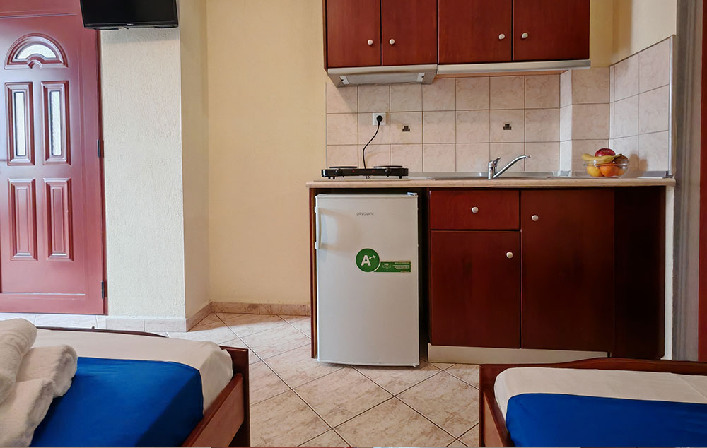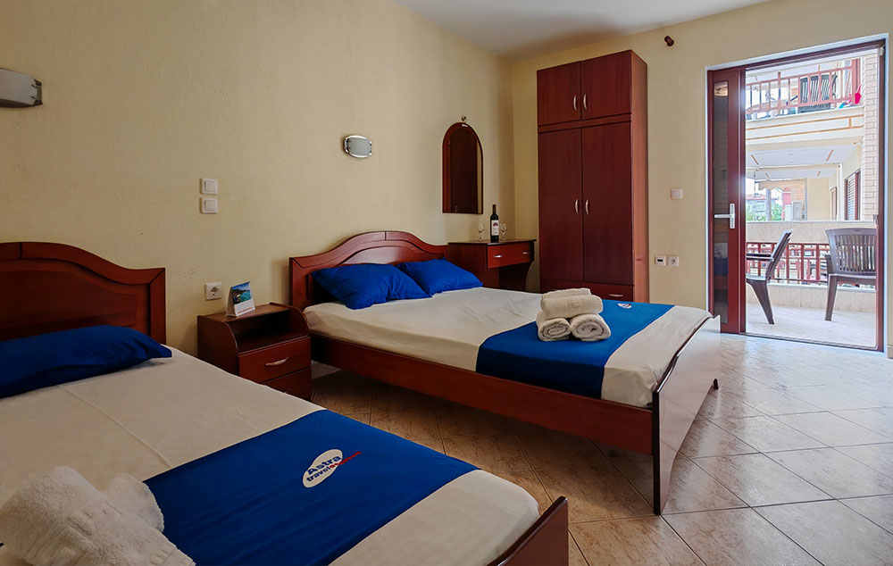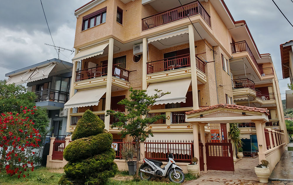 SARTIOS – U ponudi su studiji za 2-4 osobe koji se nalaze na prvom i drugom spratu. Noviji studiji se nalaze u niskom prizemlju.