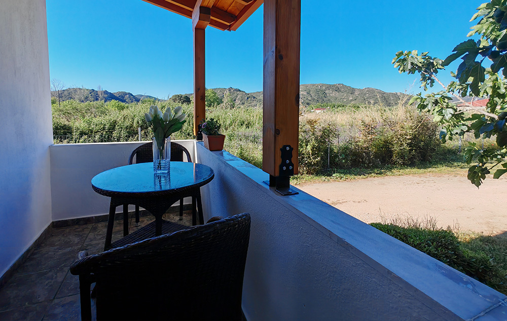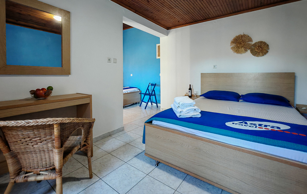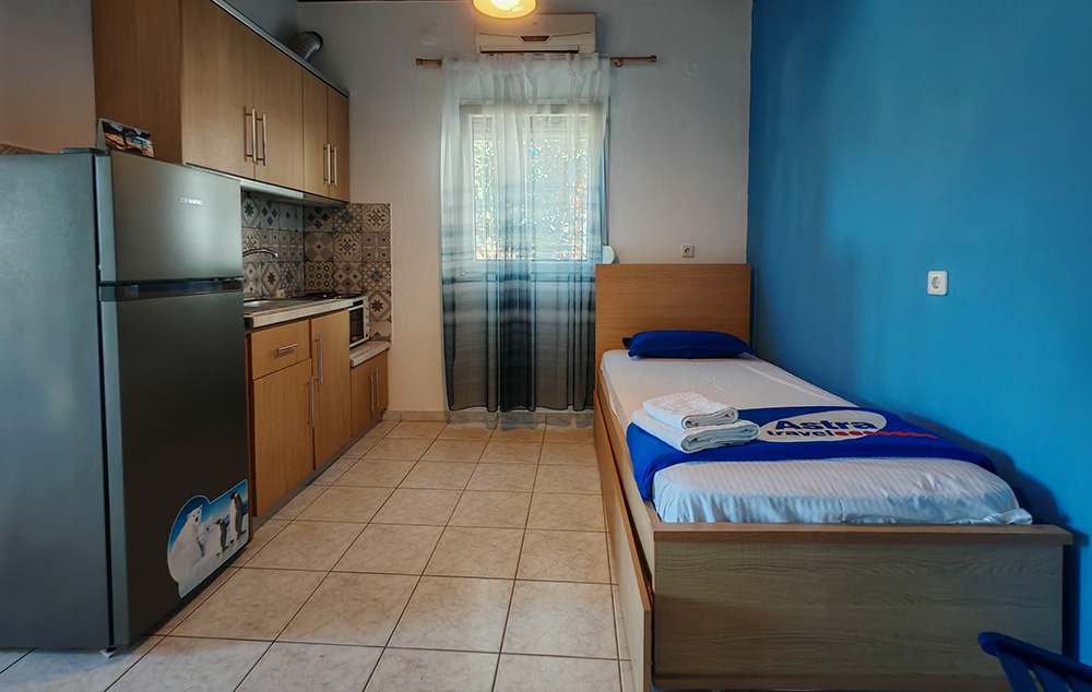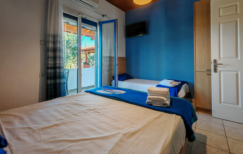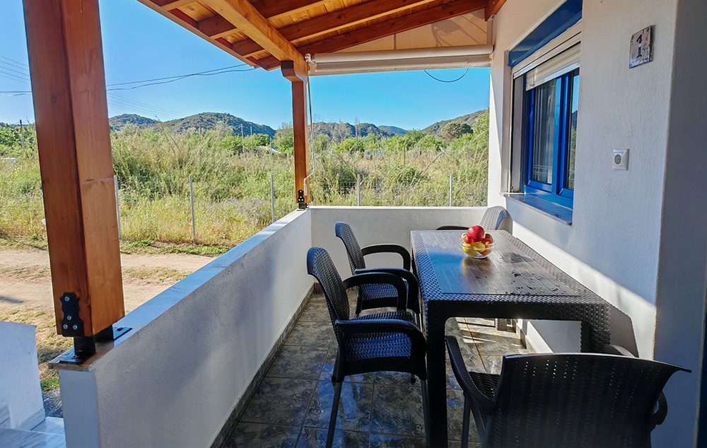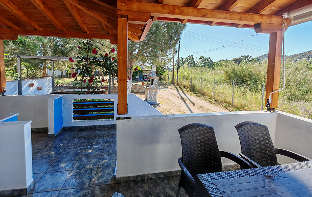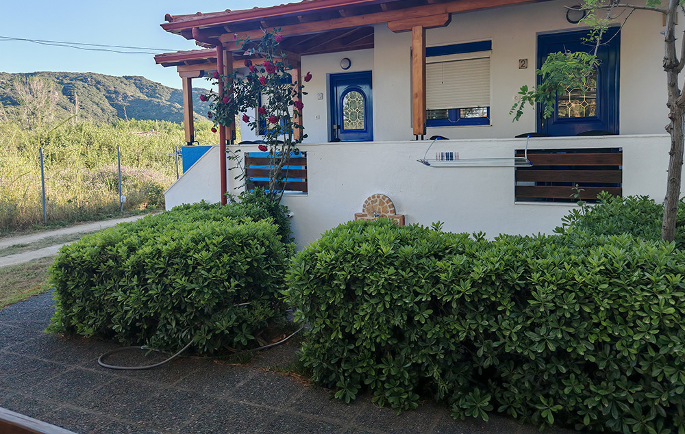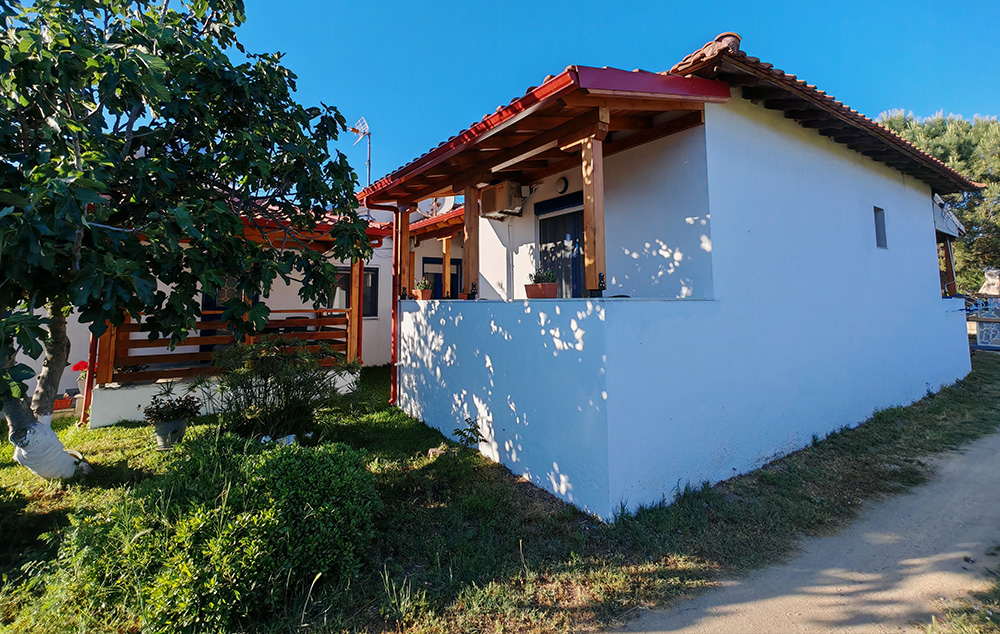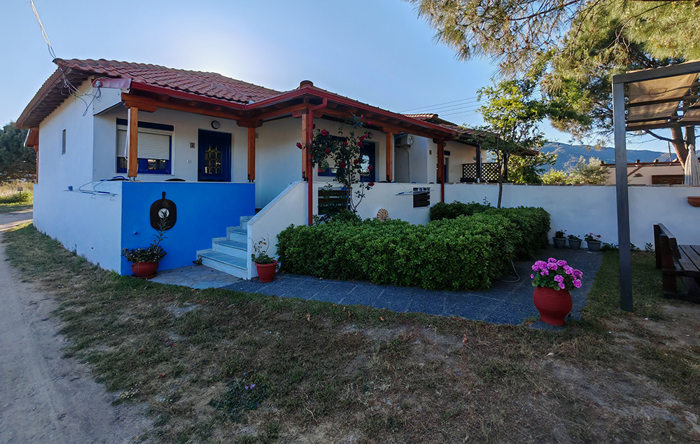 Nalazi se na 50m od prostrane Sykia plaže. U ponudi su studiji za do 4 osobe i apartmani za do 5 osoba koji se nalaze u visokom prizemlju. Kuća ima SAT TV, WIFI i klima uređaje čije je korišćenje uključeno u cenu. Gostima je na raspolaganju parking. Najbliži market za nabavku osnovnih potrepština se nalazi na nekih 400m od kuće. Za veće snabdevanje najbliža je Sykia na 4km ili Sarti na 11km od kuće.