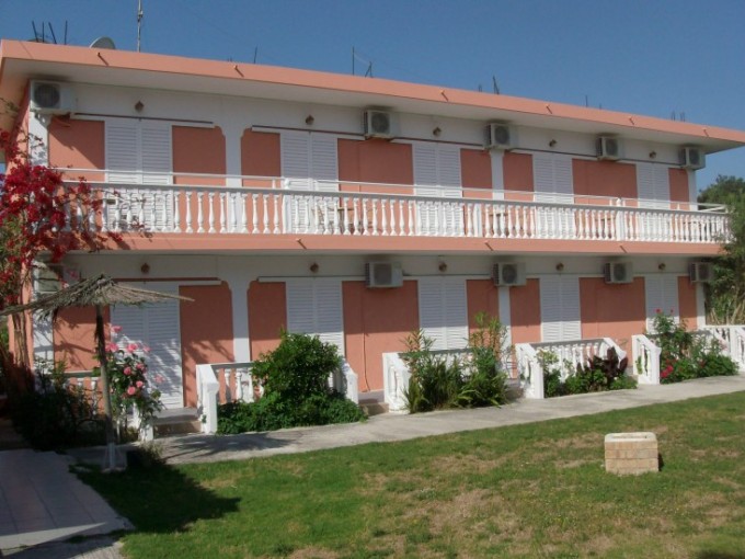 Vila Lefkas se nalazi u mirnoj uličici na oko 200 metara od glavne ulice Laganasa. Vila je jako blizu prelepe peščane plaže. U svom sastavu ima dvokrevetne i trokrevetne studije. Smeštajne jedinice poseduju kompletno opremljenu čajnu kuhinju u okviru sobe, kupatilo (tuš/WC), TV i balkon. Svaka smeštajna jedinica raspolaže klima uređajem i sefom čije se korišćenje doplaćuje na licu mesta (6 € dnevno po studiju za klima uređaj i 2 € dnevno po studiju za sef ). Ove doplate nisu obavezne.