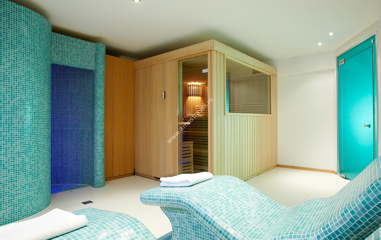Sadržaj: Recepcija, restoran, bar pored bazena, bašta, TV sala, menjacnica, internet kutak,konferencijska sala, sobe za nepušace, lift, bazen, deciji bazen, mini klub, animacioni program,prodavnica, usluge pranja, peglanja veša, hemijsko cišcenje, doktor, dadilja, bilijar, igraonica, decije igralište, kozmeticki salon, aerobik, wellness centar, fitness centar, teretana, parno kupatilo, masaža, sauna, dakuzi, parking.