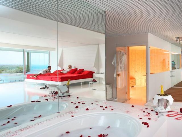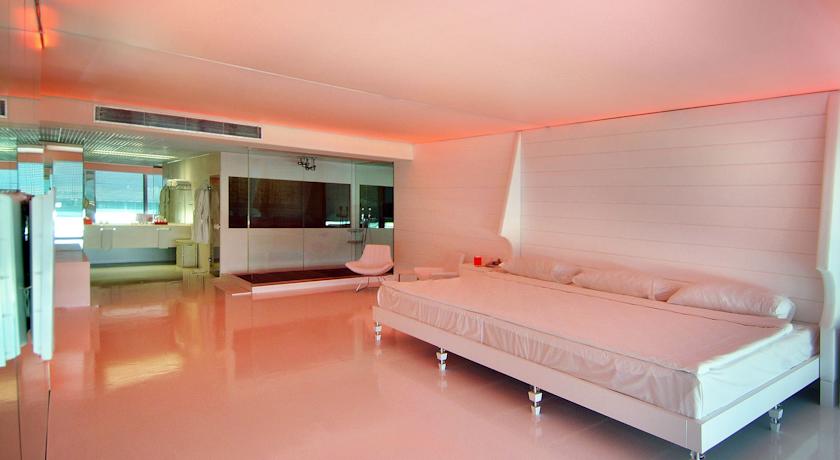 Smeštaj: Balkon, sofa na balkonu, garderoba, parno kupatilo za 2 osobe, plazma TV, satelitski TV i radio kanali, mini bar, maxi bar, sef (ne plaća se), jacuzzi, papuče i bademantil (na zahtev), ergonomsko-terapeutski krevet, ogledalo za šminkanje, 11 vrsta led osvetljenja, barrisol plafon, wireless internet, zid u ogledalima, direktan telefon, set za čaj i kafu. Plaća se: Batler, Maxi bar, room service.