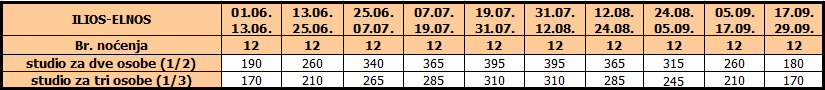 – Najam studija /apartmana na 12 noćenja.