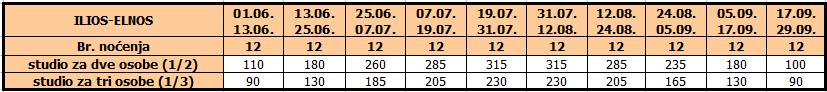 • Ukoliko dete do 12 godina koristi vlastiti ležaj, plaća cenu iz tabele umanjenu za 20€
