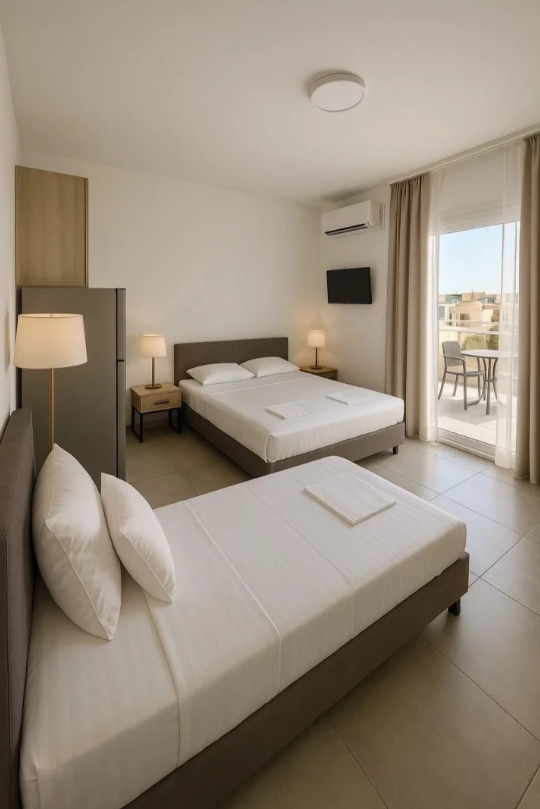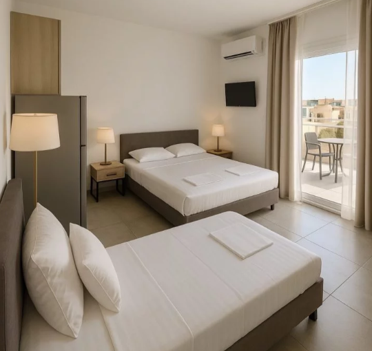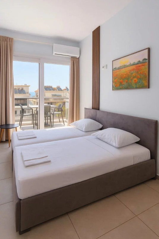 Moderno opremljeni apartmani pružaju odličan komfor za savršen odmor. Apartmani poseduju TV, Wi-Fi, kuhinju, kupatilo. Svaki apartman ima komarnike i klimu u dnevnoj sobi. Korišćenje klime je uračunato u cenu.