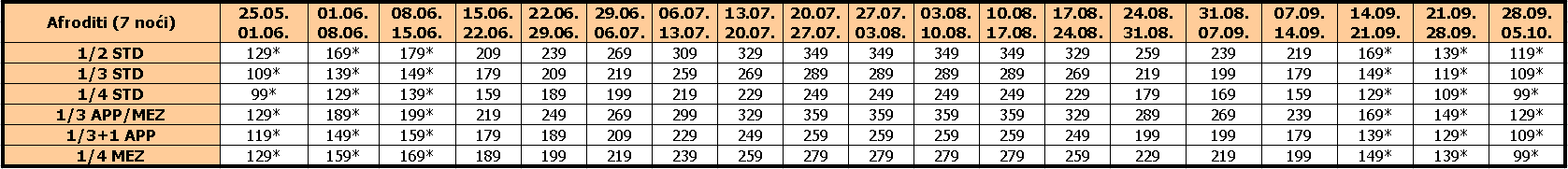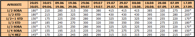 Za sopstveni prevoz cena aranžmana se umanjuje za 30€ po osobi, a 20€ za smene označene ZVEZDICOM (*)