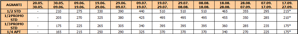 – termini označeni * nemaju umanjenje za sopstveni prevoz