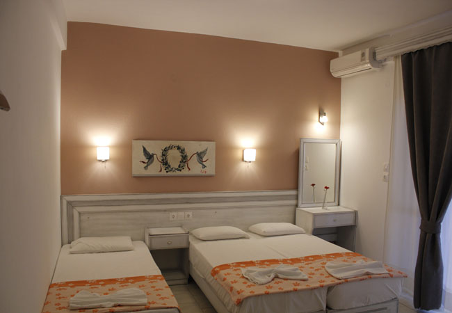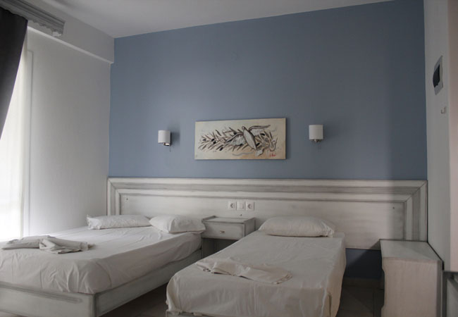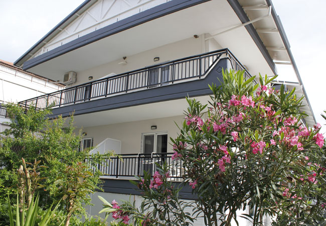 Apartman 1/5: Apartman se sastoji od dve prostorije. U prvoj prostoriji se nalaze dva standardna singl ležaja, noćni stočić, TV. U istoj prostoriji se nalazi i kuhinja sa elementima (frižider,sudopera, rešo sa dve ringle,aspirator, posuđe za pet osoba) I kupatilo (TUŠ/WC). U drugoj prostoriji je spavaća soba koja je odvojena kliznim vratima I poseduje francuski ležaj i jedan standardni singl ležaj , TV, ormar, klima uređaj . Obe sobe imaju izlaz na zajedničku terasu koja u svom sastavu ima dva stola i pet stolica .