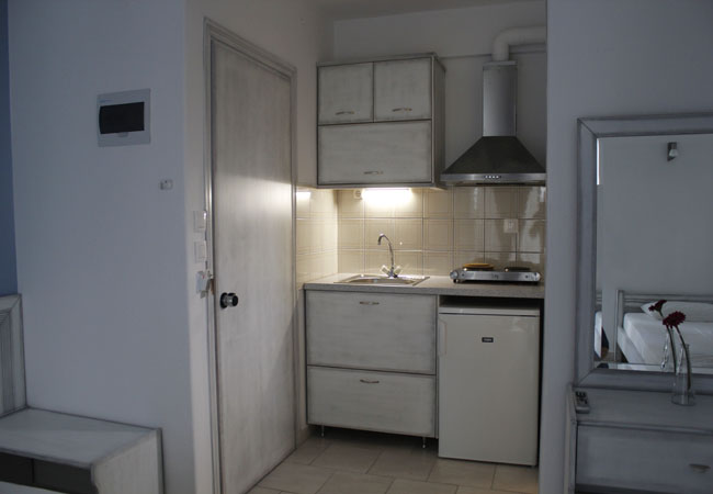 Studio 1/2: Sadrži sobu sa jednim francuskim krevetom dimenzija 125×190 ili 2 standardna singl ležaja. Studiji poseduju kuhinju (frižider,sudopera, rešo sa dve ringle, aspirator, posuđe za dve osobe), TV, ormar ,klima uređaj, kupatilo (TUŠ/WC). Terasa sa mini sušilicom za veš I garniturom od stola sa dve stolice .
