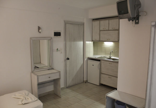 Studio 1/3: Studiji su lepo uređeni I prostrani . Sadrži sobu sa jednim francuskim ležajem dimenzija 125×190 i jednim standardnim singl ležajem, ili 3 standardnasingl ležaja (2spojena + 1 standardni) Studiji poseduju kuhinju (frižider,sudopera, rešo sa dve ringle, aspirator, posuđe za tri osoba), TV, klima uređaj,ormar, kupatilo (TUŠ/WC). Terasa sa mini sušilicom za veš I garniturom od stola sa tri stolice .