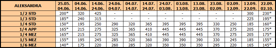 Cene iz tabele predstavljaju cenu paket aranžmana (smeštaj + prevoz) po osobi.