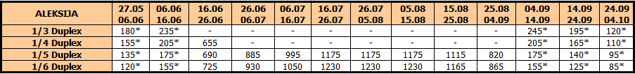 U smenama sa zvezdicom *, u slučaju sopstvenog prevoza cena paket aranžmana se umanjuje za 25€ po osobi.