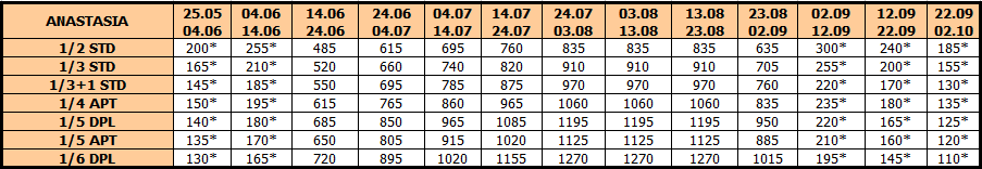 U smenama sa zvezdicom *, u slučaju sopstvenog prevoza cena paket aranžmana se umanjuje za 25€ po osobi.