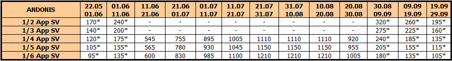 U smenama sa zvezdicom *, u slučaju sopstvenog prevoza cena paket aranžmana se umanjuje za 25€ po osobi.