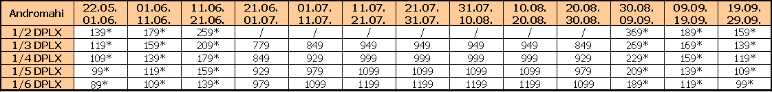 Cene su izražene u evrima po APP/DPLX na bazi najma, osim kod cena sa * gde je paket aranžman, BEZ DINARSKOG DELA