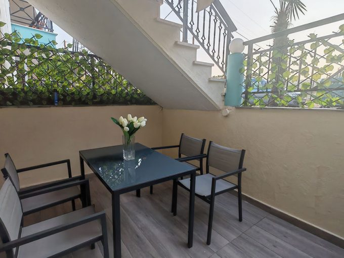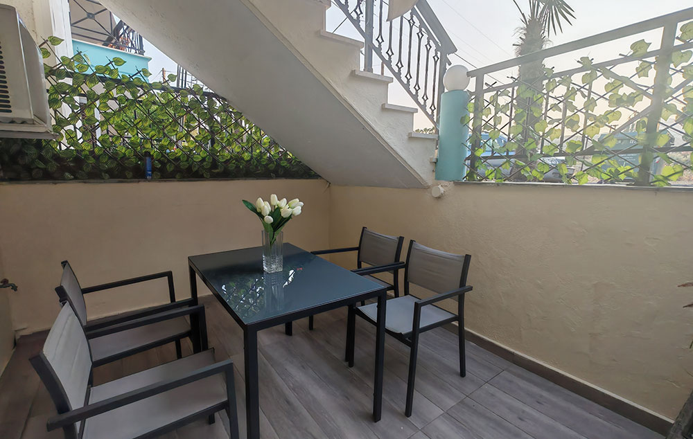 Nalazi se na 110m od plaže u novom delu Sartija. U ponudi su dvokrevetni studiji u niskom prizemlju i četvorokrevetni apartmani koji se nalaze u niskom prizemlju i na prvom spratu. Kuća ima SAT TV, WIFI i klima uređaje čije je korišćenje uključeno u cenu u julu i avgustu.